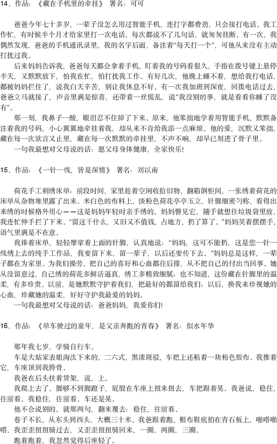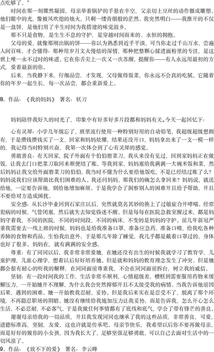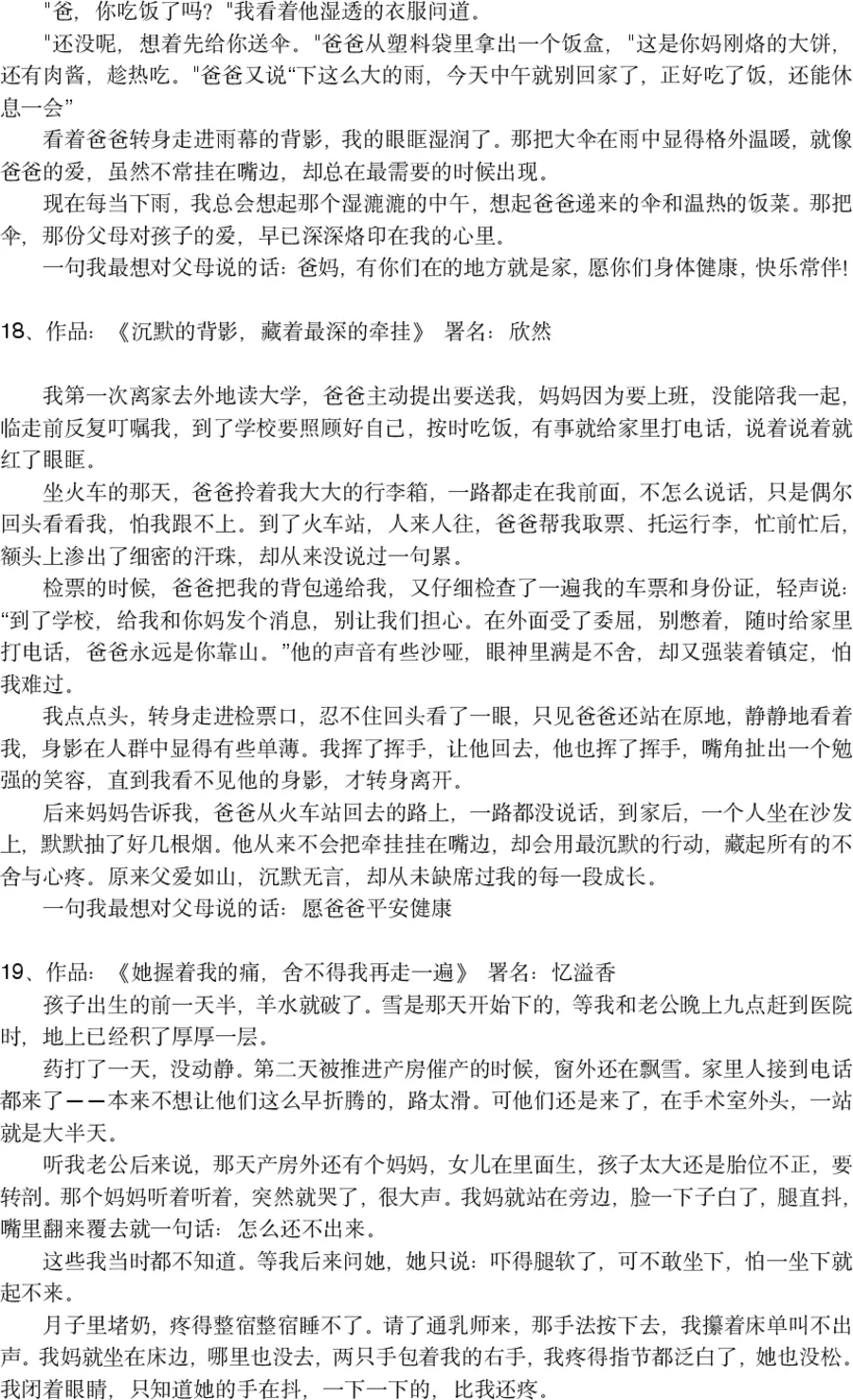 100篇征文,100份真情,每一篇都承载着作者与父母之间的难忘瞬间。为了不辜负每一份真诚,本次评选分为三个阶段,层层筛选、严格把关,力求选出富有感染力、贴合主题的优秀作品。