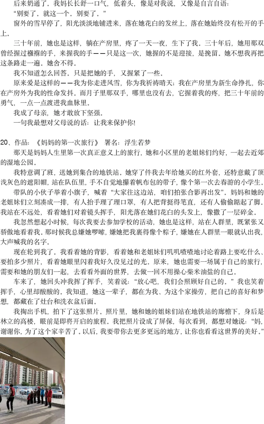 我们将100篇征文按顺序分为5组,随机分配给5位评委,每位评委从自己负责的组内,精心挑选出4篇富有亮点、打动人心的作品,进入下一阶段评审,共计20篇作品脱颖而出。
