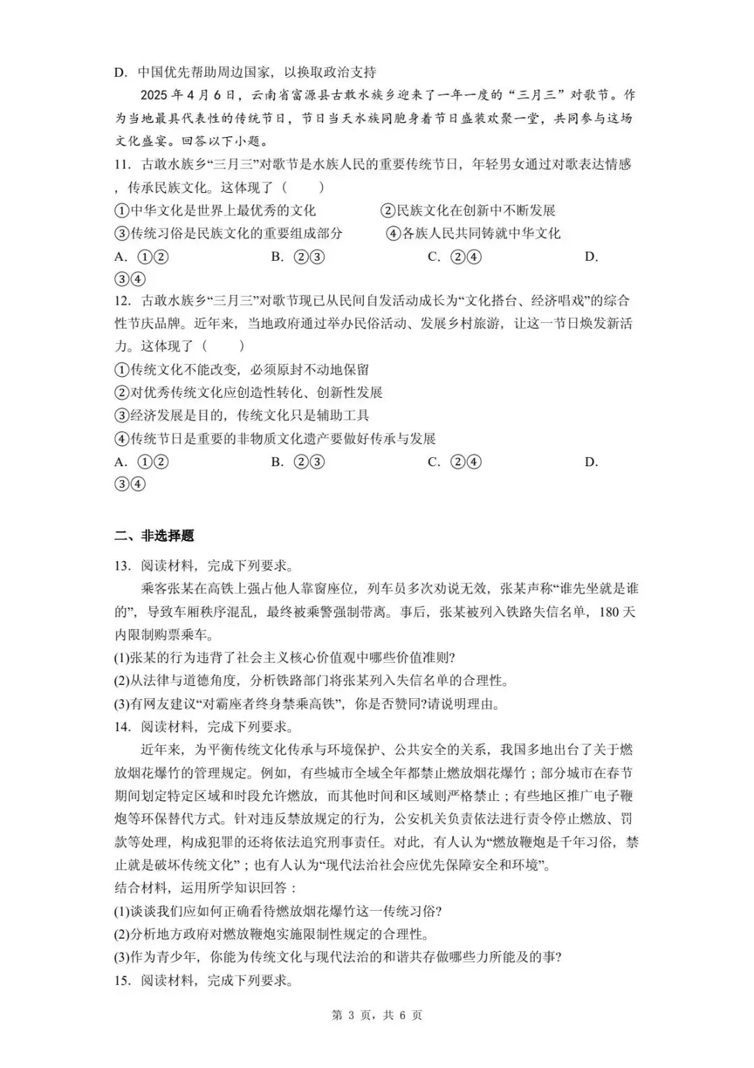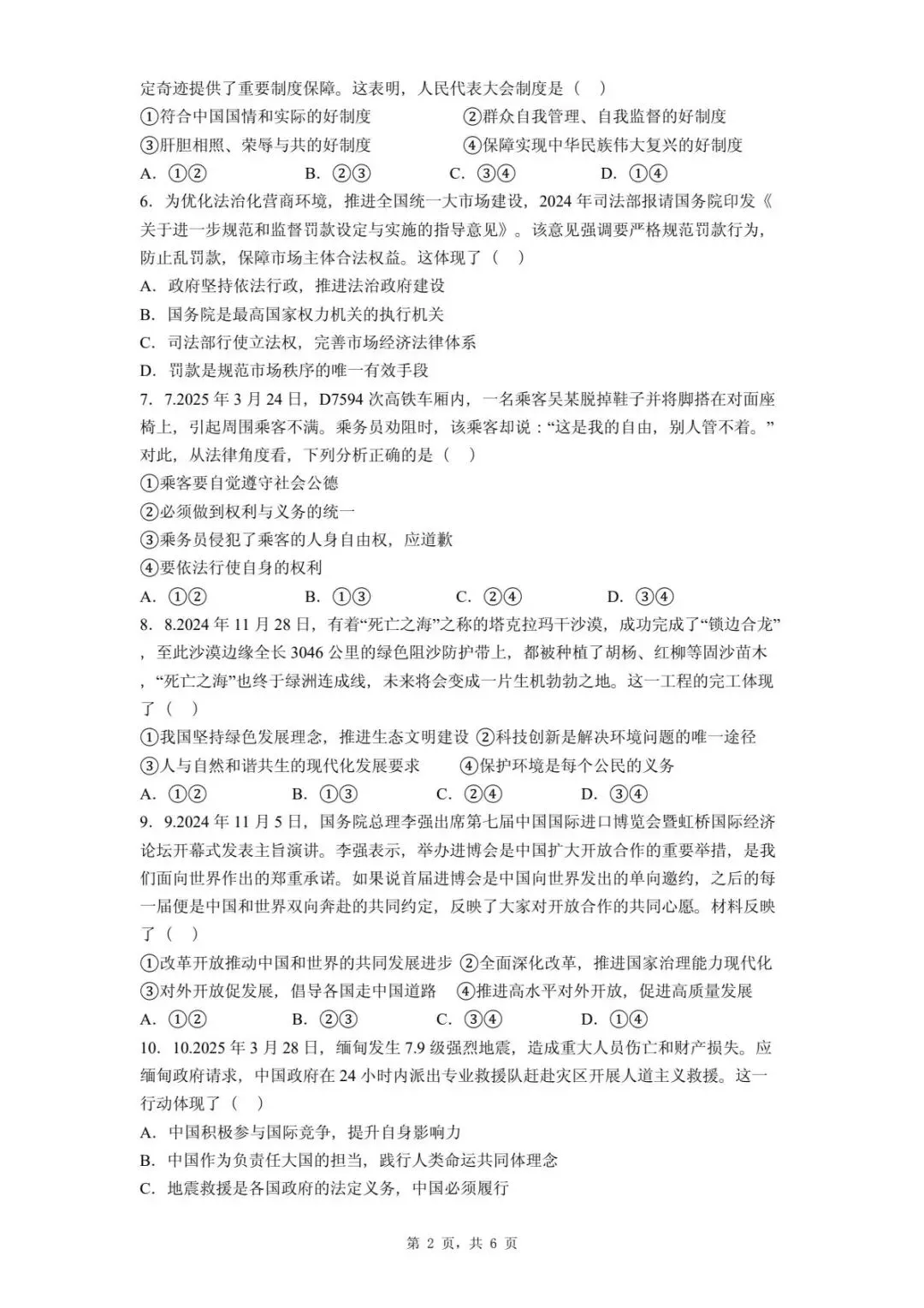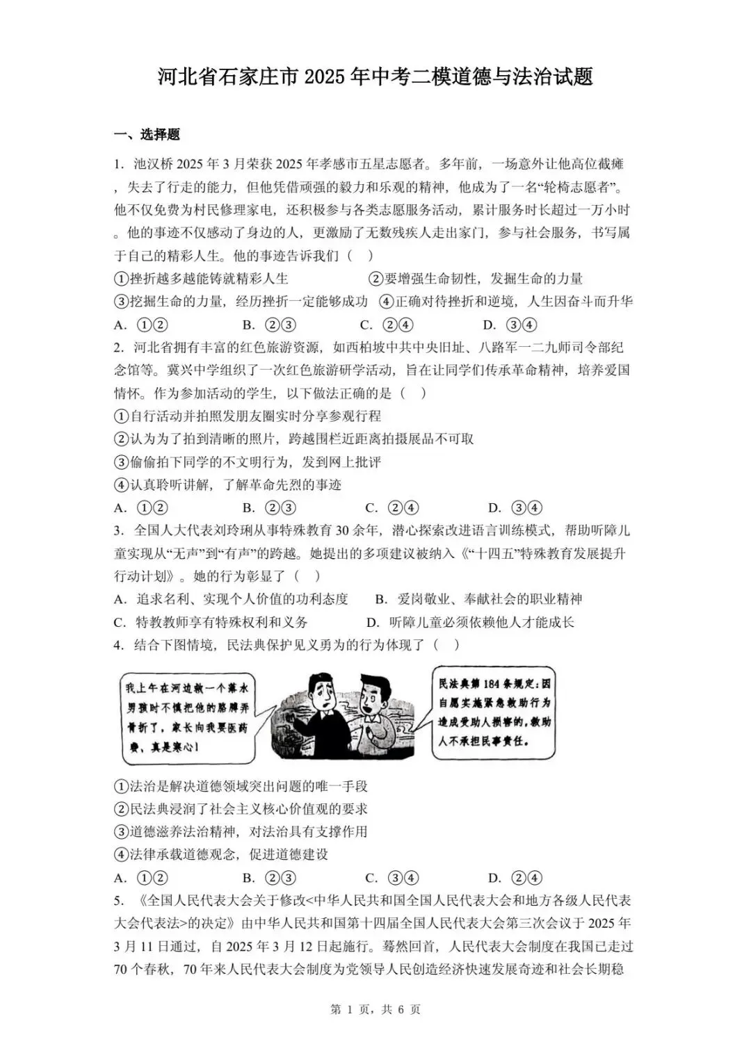 >2025年河北省石家庄市中考二模道德与法治试题