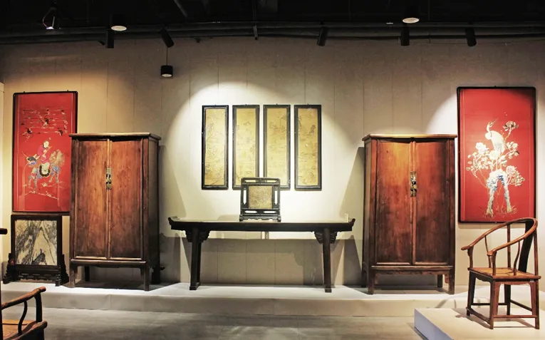 古家具展厅中,一件件古朴的老家具,一块块鎏金匾额高悬,精巧的雕刻,书法的艺术,不仅是中华艺术的瑰宝,更承载着传统伦理与家风。