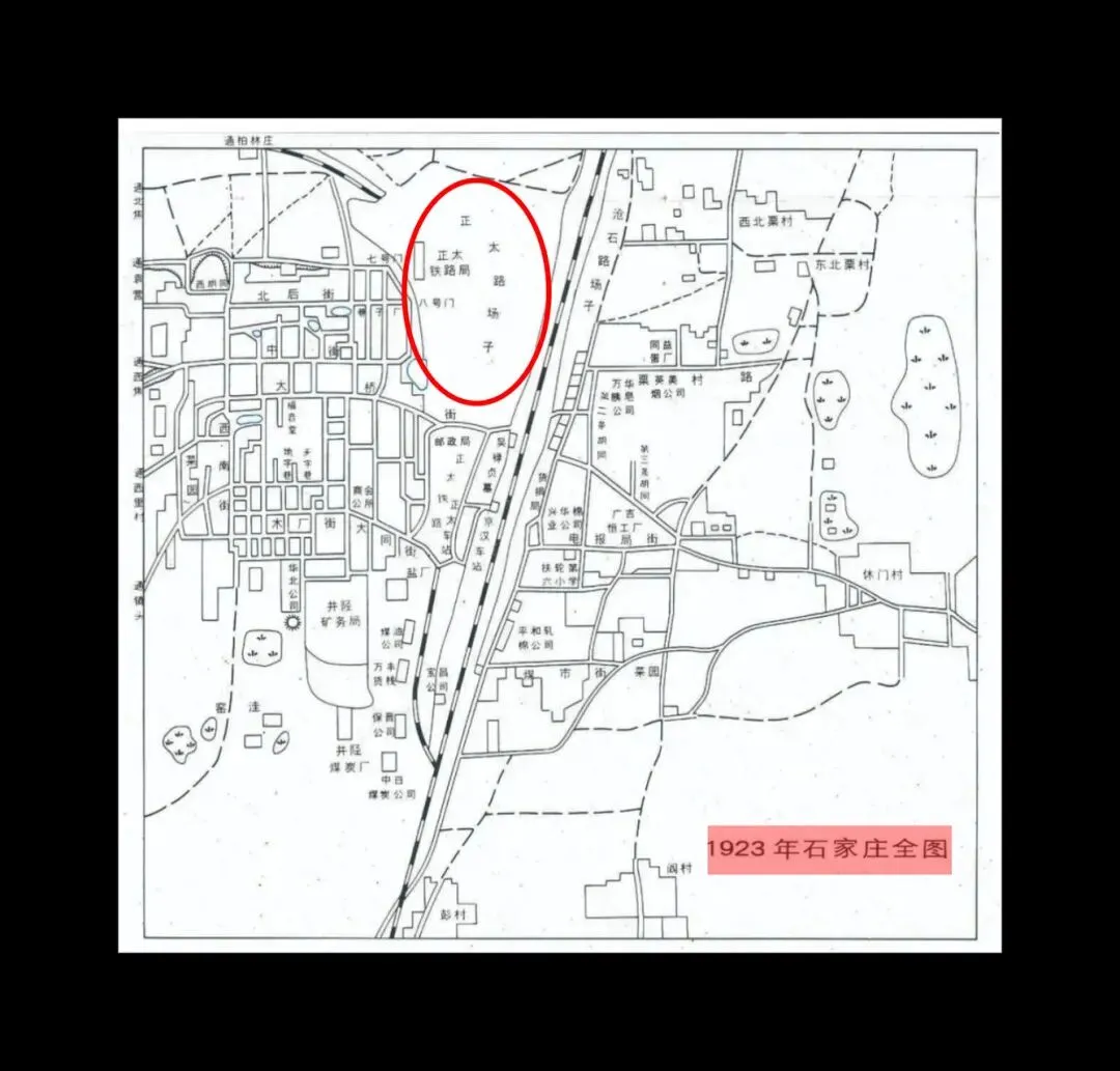 1904年5月,正太铁路动工,为修建起点枢纽,跨石家庄、栗村、休门等村征收农田近千亩,建设车站、货场、办公区及正太总机厂。