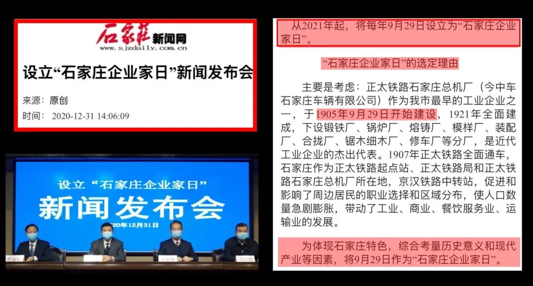 值得一提的是,这座工厂的精神内核,已被这座城市永远镌刻在历史与现实的交汇点上。自2021年起,每年的9月29日被正式设立为“石家庄企业家日”——选择这一天,正是为了纪念1905年9月29日,正太铁路石家庄总机厂正式开工奠基的历史性时刻。