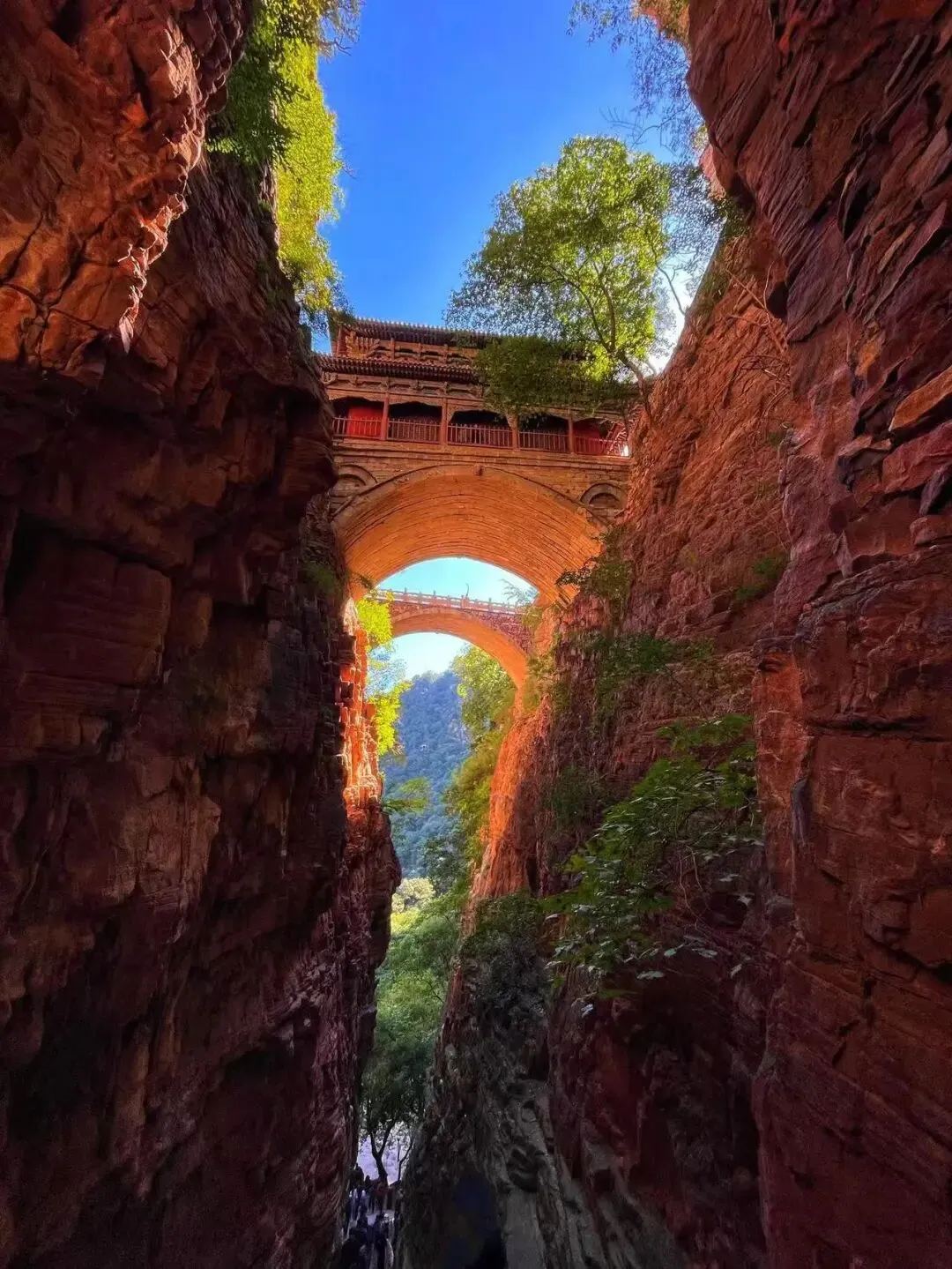 苍岩山位于河北省石家庄市井陉县境内,国家重点风景名胜区、国家4A级旅游区,中国三大悬空寺之一,太行八大陉之一。《黑神话悟空》原型古建筑。卧虎藏龙玉娇龙经典一跳取景地,西游记,木乃伊都曾经到此地取景。
