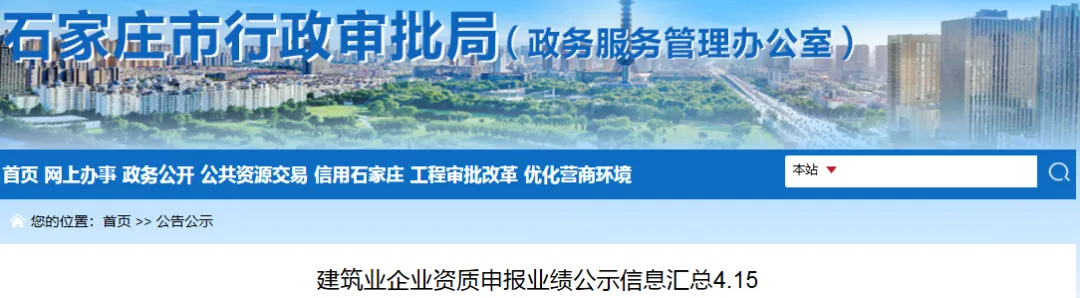 根据《建筑业资质标准》和《石家庄市行政审批局关于申报建筑业企业资质业绩公示的通知》,现将第六批(1家建筑业企业资质申报技术负责人业绩信息)予以公示,公示期自公示之日起5个工作日。任何有关单位及个人如对公示业绩的真实性或其他情况有异议,请以书面形式向石家庄市行政审批局审批七科反映。反映的情况应实事求是,有具体事例、内容。以单位名义反映情况的,应加盖单位公章;以个人名义反映情况的,应署真实姓名和联系电话。