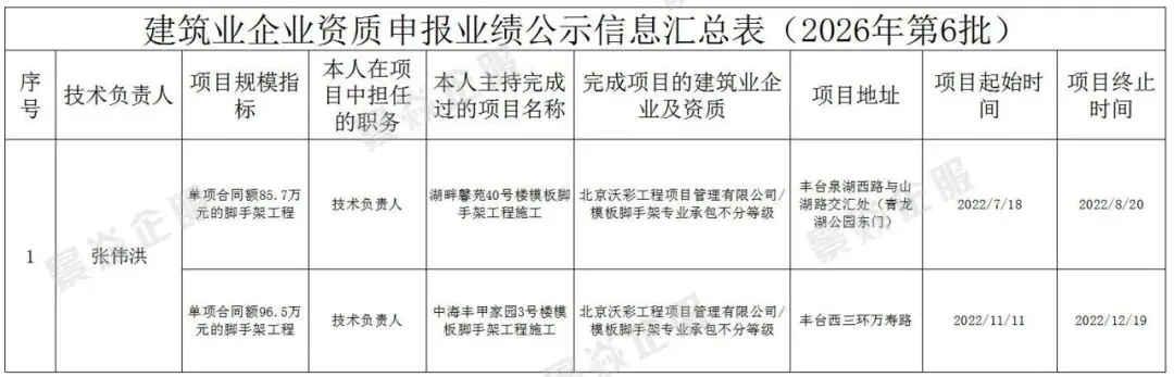 附件:建筑业企业资质申报业绩公示信息汇总表4.15
