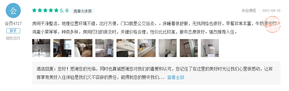 以下点评选自携程及艺龙两大酒店预订平台,真不真实上网一看便知——