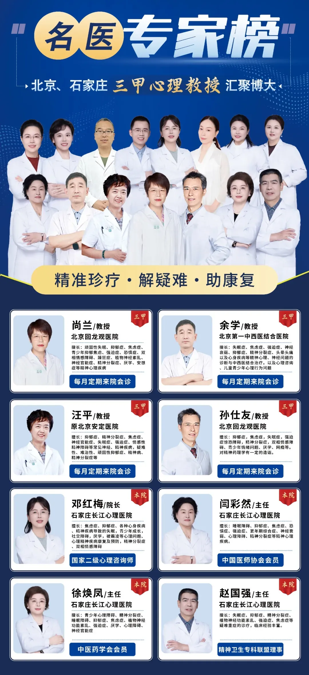 石家庄长江心理精神医院是一家专注于心理与精神健康领域的专业医疗机构,始终以 “以患者为中心” 为核心服务理念,致力于为各类心理困扰、精神障碍患者及家庭提供科学、规范、人性化的诊疗与康复服务,守护大众身心安康。