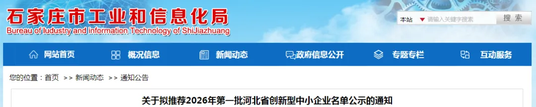 公示期2026年4月15日-2026年4月21日。欢迎社会各界监督,公示期如有异议,请以实名书面形式向石家庄市工业和信息化局提出,并提供必要佐证材料和联系方式。