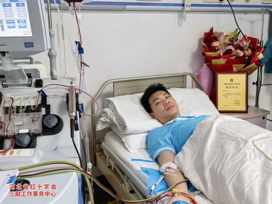 4月15日上午,在河北医科大学第一医院的造血干细胞采集室里,26岁的小申安静地躺在床上,鲜红的血液通过导管缓缓流入血细胞分离机。他精神饱满,嘴角带着一抹藏不住的笑意——这一刻,他等了几个月,也盼了几个月。