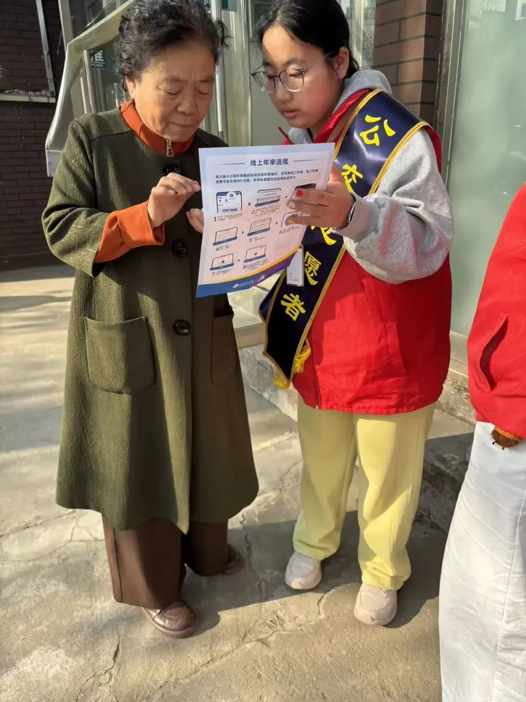 面对不少老人对智能手机操作不熟悉、对支付宝线上年审流程陌生的困境,社工们主动上前一对一提供帮助。他们或是拿着流程指引单,逐步骤讲解操作要点;或是接过老人的手机,放慢节奏演示扫码、认证、提交信息的全过程,每一个细节都讲得明明白白。遇到理解较慢的老人,社工们从不急躁,反复讲解、多次演示,直到老人完全听懂、学会为止。