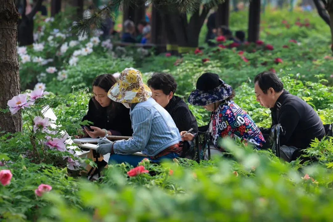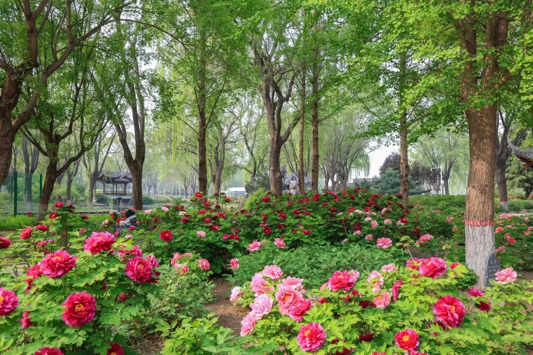 石家庄植物园牡丹进入盛花期,各色牡丹竞相绽放,正是观赏的最佳时节。