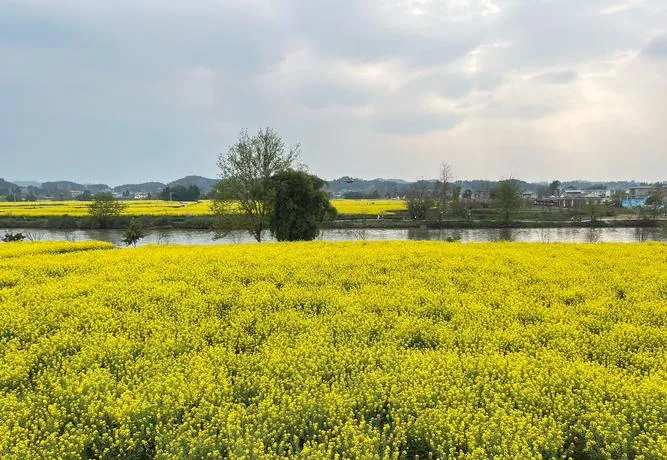 但恰恰是这种不刻意,让这片花海美得特别真实,你站在田埂上,闻着油菜花的味道,看着远处村子的轮廓,会突然觉得,原来美这个东西,不一定要被设计、被包装、被赋予意义,它可以就这么长在那,该干嘛干嘛,顺便让你看到,这就够了。