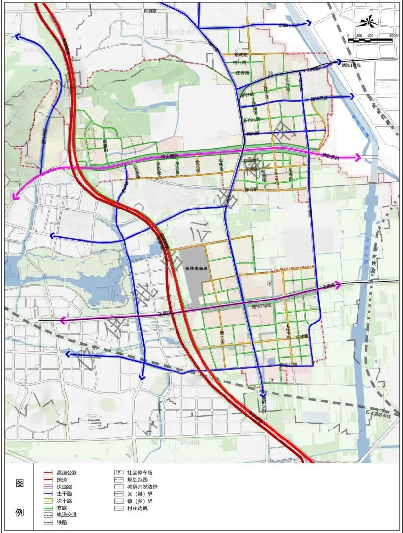 交通方面,预留轨道3号线、8号线及市域(郊)铁路S5线、S1线用地,打造“十一横十一纵”主干路网,实现轨道交通与城市功能深度融合。
