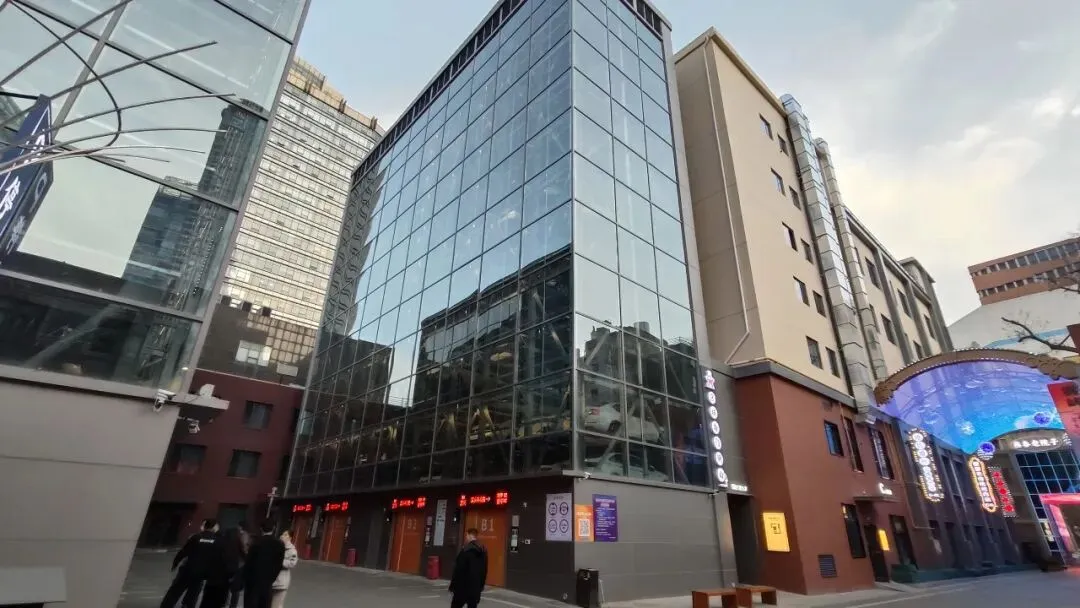 燕春饭店立体车库位于石家庄核心区,占地约350㎡,采用垂直升降智能技术,由8层、12层双体车库组成,设158个车位,高效集约土地。