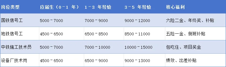 铁道信号施工与维护专业学生毕业后可由学校对口安置就业。主要就业岗位与薪资情况可参考: