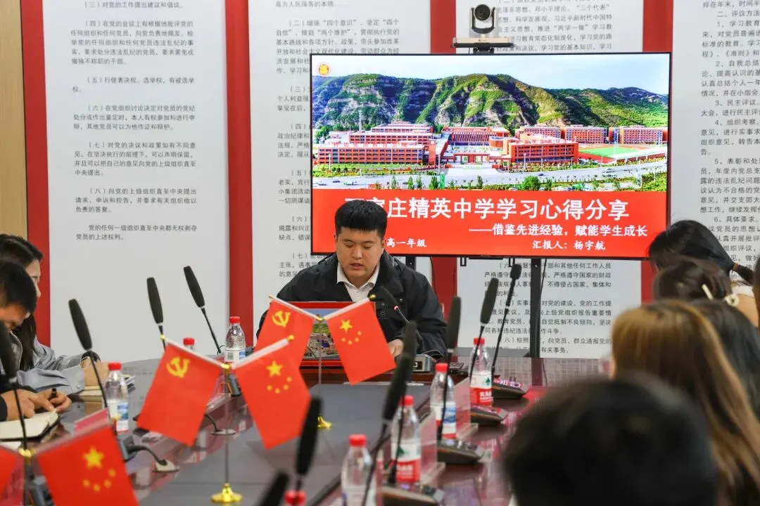 高一年级副主任杨宇航以“以学生为主体,激发自主学习能力,借鉴精英中学学习经验,将其落地在我们的课堂与德育管理当中。”为主旨展开分享。本次学习他重点关注了精英中学的德育管理和教学活动,通过观摩学习和对比思考,他为今后学校的管理和发展提出了宝贵的优化建议和提升方向。