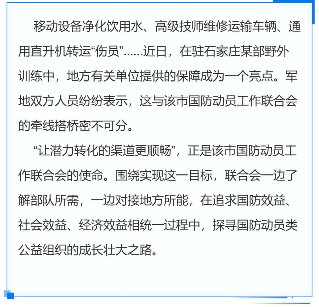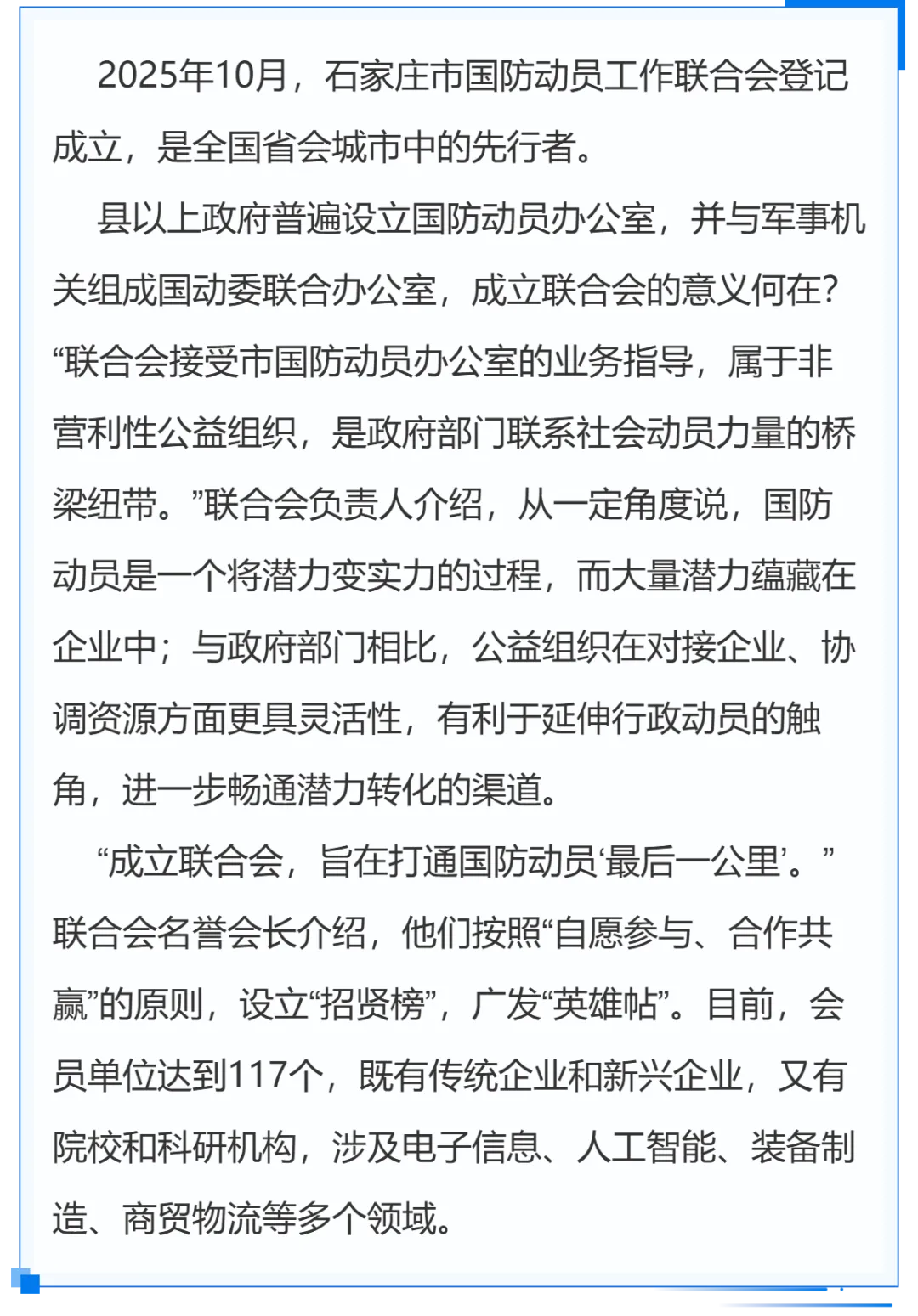 让“所需”“所能”双向奔赴——对河北省石家庄市国防动员工作联合会的新闻调查