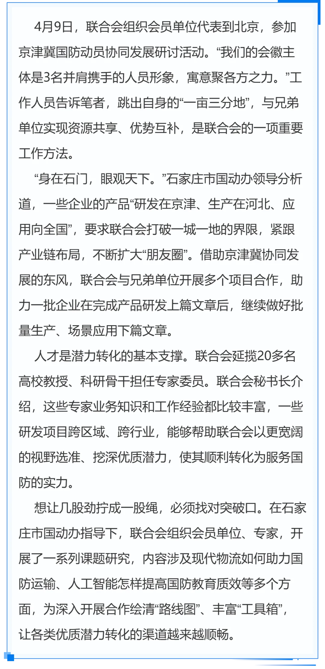 >让“所需”“所能”双向奔赴——对河北省石家庄市国防动员工作联合会的新闻调查