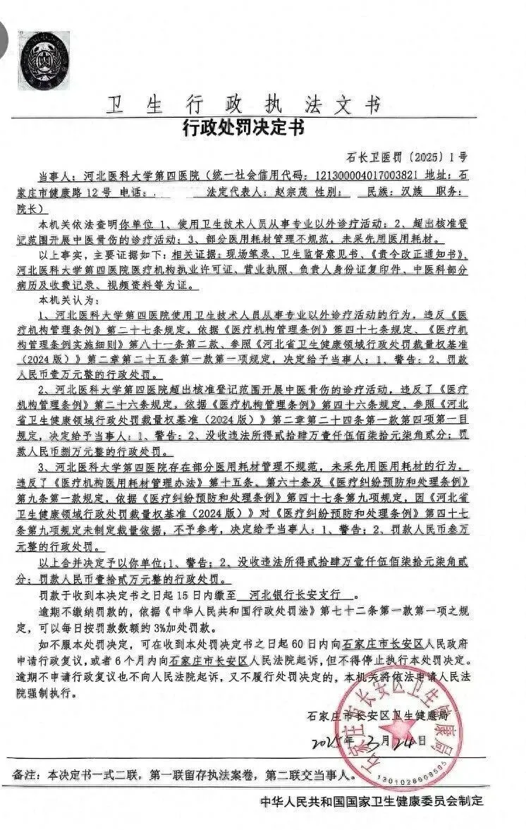 另一个,也有不少医院关门了,记得之前还去一个眼科医院送餐,可能和人们越来越注意视力有关吧,近视眼也越来越少了。现今出生率低,导致医院的妇产科和新生儿科都在减少编制或者干脆取消。一些是通过地铁或者公交车广播做广告,如石家庄爱尔眼科医院,似乎美莱做的广告最大,但是其广告水准确实不敢恭维。医美医院的确在从事让人变得更美,但是广告的艺术性几乎没有美感。他们的思路是引进京津名医,看病不去北京,就可以享受北京的医疗条件。在大家的认知中,县级医院不如市级医院,市级医院不如省级,省级不如北京,毕竟北京聚集了全国最有名的医生,但是,很少发现省级医院宣传自己的,在地铁和公交广告中大多数都是市级医院在宣传自己,可见他们的生意不大好做,他们正在利用京津名医与省级医院抗衡,试图分一杯羹。但是,市里的医院也有其弊端,比如,我带着孩子去了一家市级医院看感冒咳嗽,医生看后,直接让做8个病毒检测,花费就得一千多,这让我有点接受不了。还说孩子是肺炎,要住院,我自己判断都没那么严重。于是,我就带着孩子去了省级医院,开了点药,回来吃了,慢慢就好了。这还不是一次,后来我就不去市级医院了。当然,也不能一概而论,每个人的体验各不相同。即使省级医院也各有各的问题。每个医生也各不相同。实际上,省级医院也有引进北京的名医,只不过他们在宣传力度上不大,可能他们根本没必要进行宣传,因为现有的病人都不足以应对。所以,在石家庄住省级医院,往往床位紧张,许多人都会找人托关系才行。违法主要包含:过度治疗、超标准收费、重复收费等,大家去医院要仔细校对自己的账单。大家对于大病,往往都是先去省级医院,但是现在对于小病也去省医院,可见我们实际上失去了一些信任。这是省四院的一项行政处罚单,实际上这还不是第一次被处罚。但是在追求美和健康时,我们要保持自己的理性,不能盲目,不然很容易被人利用或被宰割。一个医院只有提供良好的监督制度体系,才是健康的制度,最近三年,还有至少6家医院关停,同期注销诊所、门诊部超 50 家,民营机构占绝大多数。