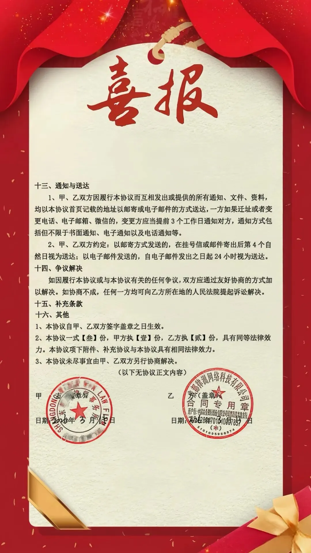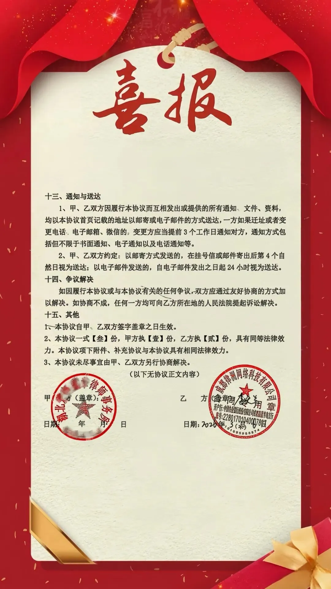 2026 年 3月,我们正式与西安、烟台、石家庄、襄阳、遵义、邢台等多家优质律所缔结战略同盟。这不仅是一次签约,更是我们共赴高质量发展未来的关键落子!拥抱变革,我们步伐坚定;数智转型,我们走在前列。资源整合筑牢发展根基,创新实践激发增长动能。站在新阶段的起点,我们将与合作伙伴携手并进——以专业践行使命,以实干共创价值,共同书写法律服务提质增效、协同共赢的新篇章!