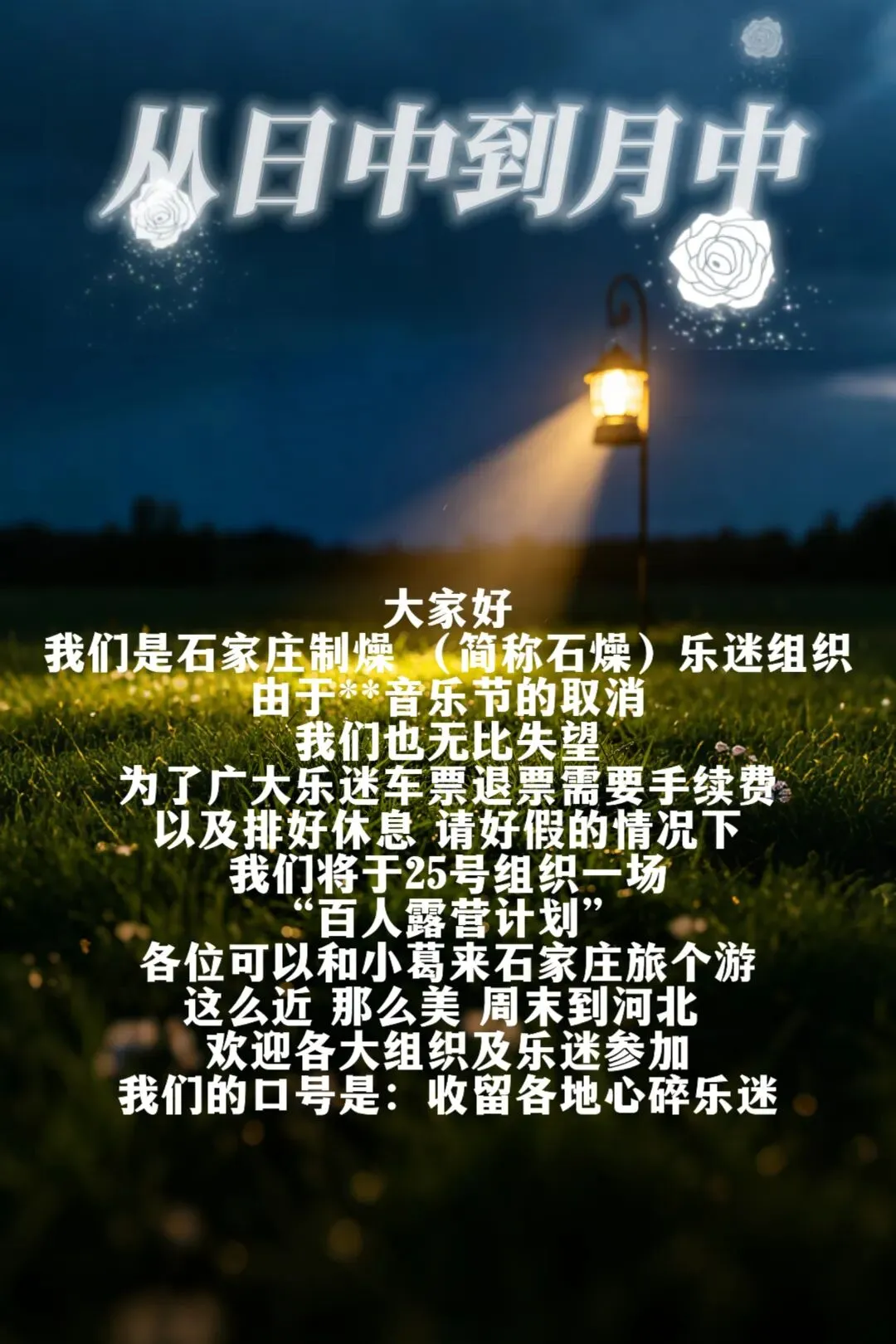 「石燥」石家庄制燥百人露营计划,收留心碎乐迷