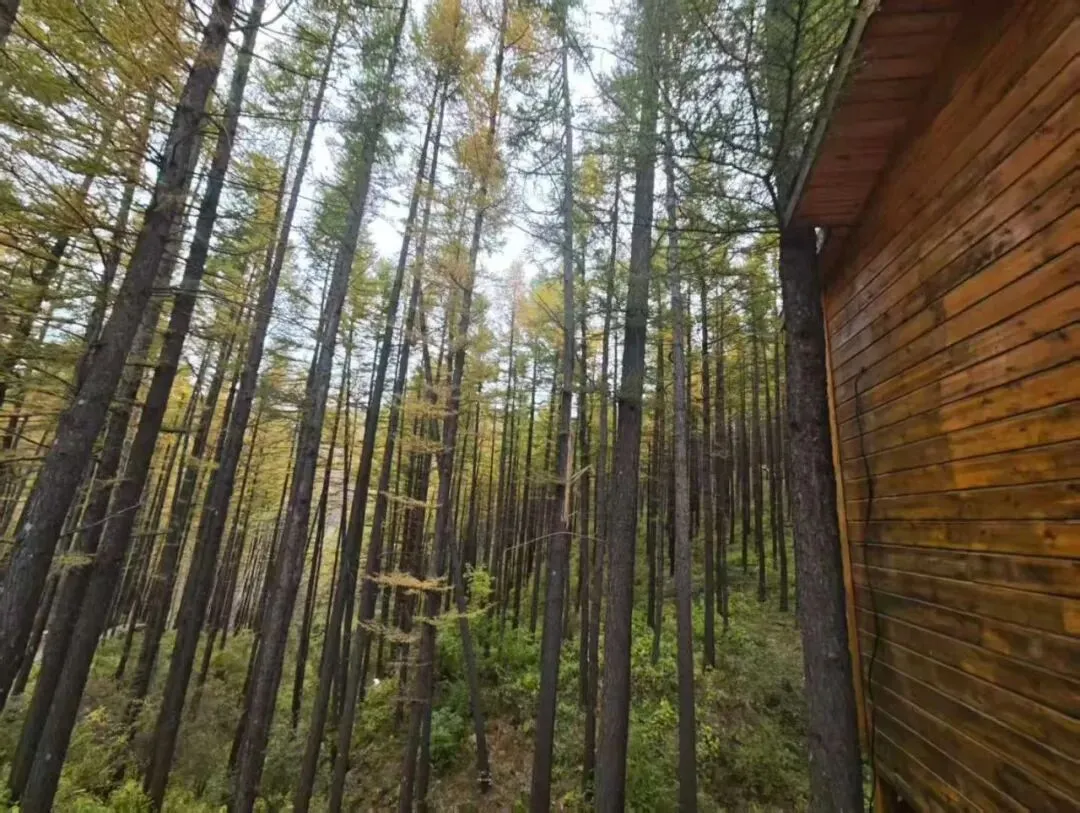 驼梁的山路大多是石板路和木栈道,不算特别陡,老人小孩慢慢走也能行。前半段路基本都在树林里,松树、桦树长得特别密,树叶遮天蔽日,一点都不晒。阳光透过树叶的缝隙照下来,地上斑斑点点,空气里全是草木的清香味,深吸一口,感觉特别清爽。
