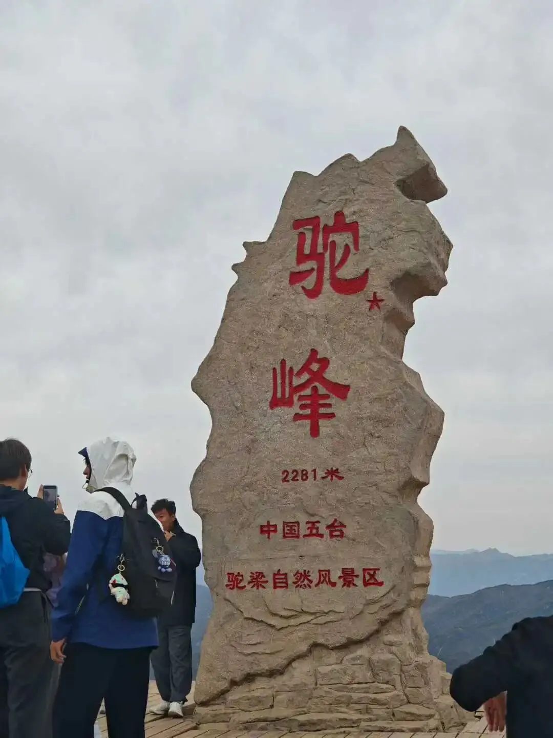 爬大概 3-4 小时,就能到山顶的云顶草原。站在草原上,四周全是连绵的青山,风一吹,草和花跟着摇晃,特别治愈。再往最高峰驼峰走,山顶有块石碑,写着海拔 2281 米,这里是河北和山西的交界处,站在这儿能一脚跨两省。
