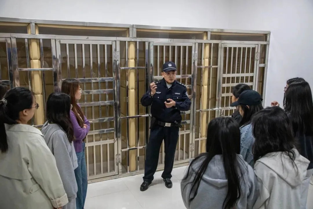 活动中,法院干警带领师生依次参观文化墙、诉讼服务中心、审判法庭与“六专四室”等场所,围绕立案登记、诉讼引导、多元调解及便民服务等工作进行重点讲解,详细介绍“六专四室”的功能定位、建设标准与运行规范。师生直观了解了司法服务全流程及司法警务工作对保障审判安全、维护司法秩序的重要作用。
