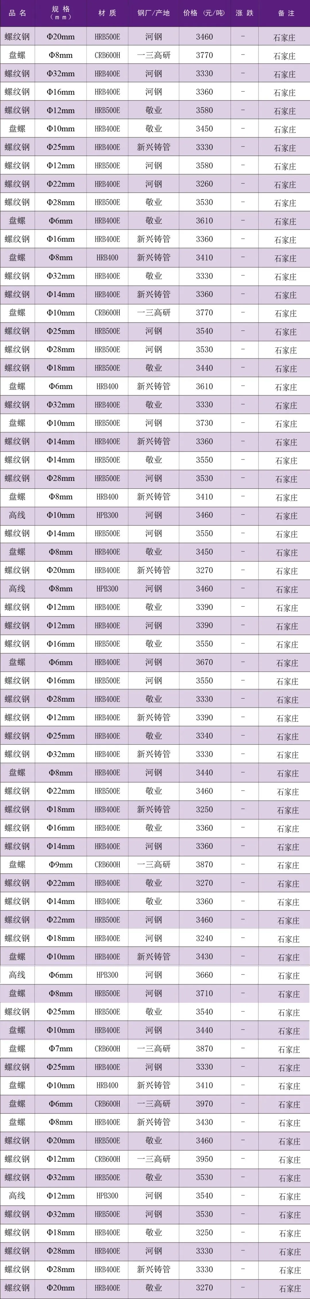 【每日一价】4月16日石家庄市场建筑钢材价格行情