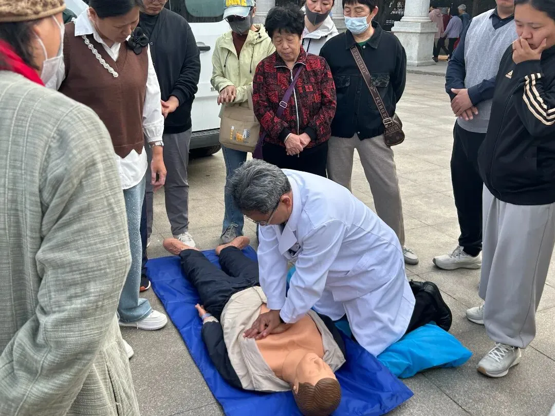 国家认证专家团队现场授课!平安医院急诊科联合胸痛中心组建金牌讲师团,急危重症医学科副主任闫慧泽亲授心肺复苏标准流程,手把手指导市民模拟演练。现场免费提供血压测量、血氧监测、心电监护等专业检查,累计服务超百人。