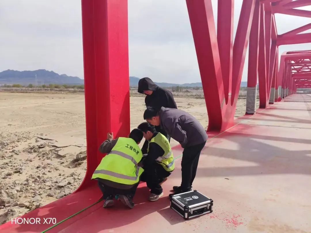 本次演练严格对标行业标准与技术规范,高度还原真实工程检测场景,覆盖桥梁荷载试验、钢结构无损检测、隧道结构检测三大核心业务领域。在桥梁荷载试验模拟中,技术团队精准完成传感器布设、重载车辆分级加载等操作,熟练运用数据采集设备,系统开展应力、应变、挠度等关键指标的检测与分析;在钢结构检测环节,重点围绕超声波焊缝检测、涂层厚度检测、表面粗糙度检测等无损检测技术开展实操训练,强化现场测点布设、仪器操作与结果判读能力;隧道实操则涵盖主体结构检测、超前地质预报、监控量测、工程环境检测等关键参数,全方位锤炼综合检测技能。