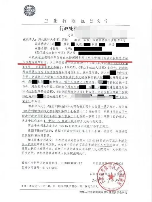 更讽刺的是:我曾了解到,其他医院因“未告知替代方案”被行政处罚4万元。