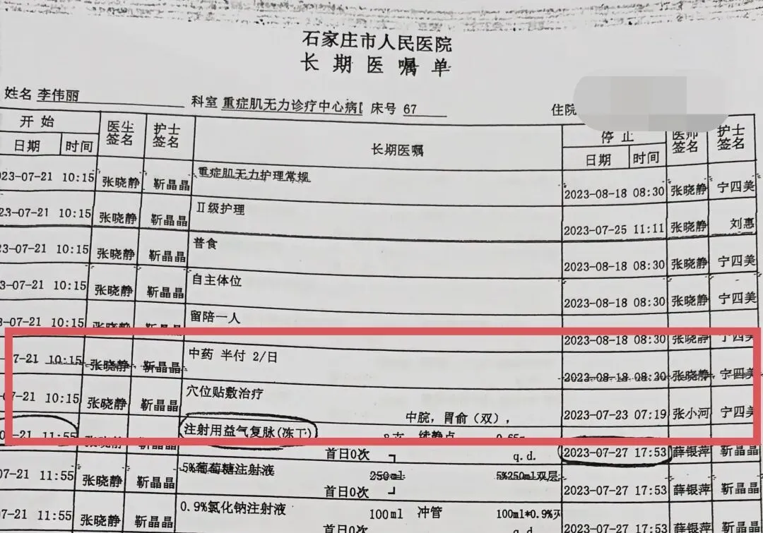 投诉中我还质疑:石家庄市人民医院重症肌无力科室医师张小河,无中医诊断、资质存疑,却开展中药敷贴。