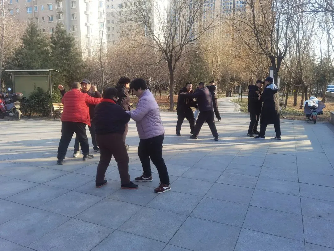 有人站桩,有人盘架,有人两两搭手,不紧不慢地画着圈。没有激烈的对抗,没有胜负的计较,只有推手之间默契的“听劲”与“化劲”。这是石家庄长安区最活跃的推手点之一,也是很多拳友口中的 “养生根据地”。
