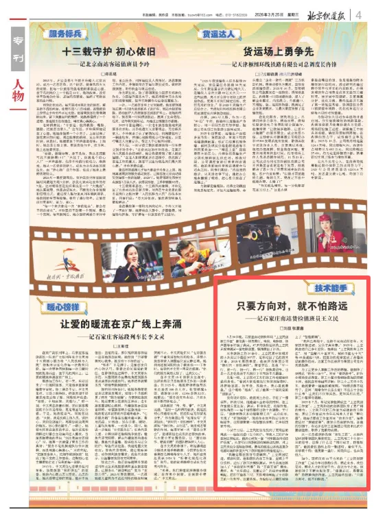 2026年3月25日,在北京铁道报发表《只要方向对,就不怕路远——记石家庄南站货检值班员王立民》人物通讯一篇。内容聚焦京铁榜样王立民的先进事迹,讲述他扎根一线、创新创造的岗位故事,传递榜样力量。