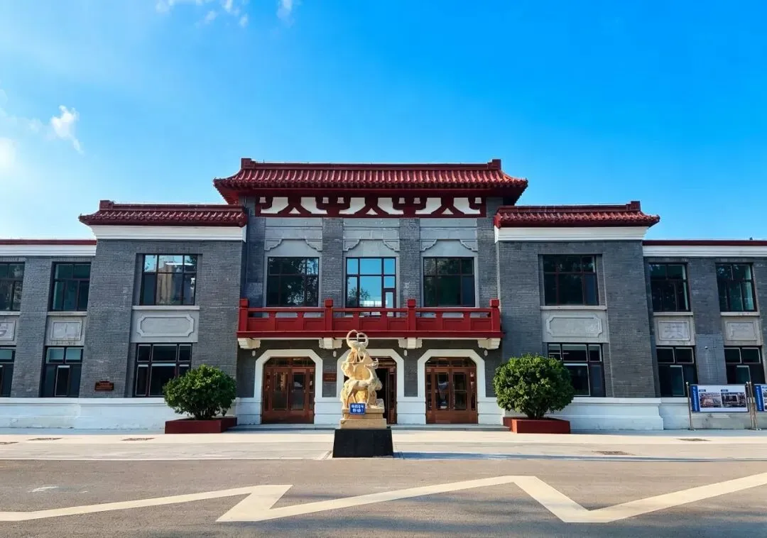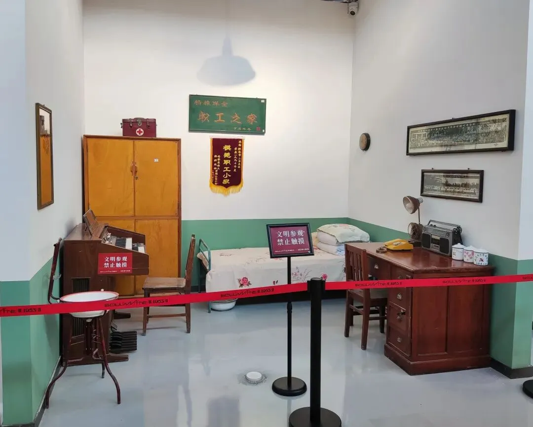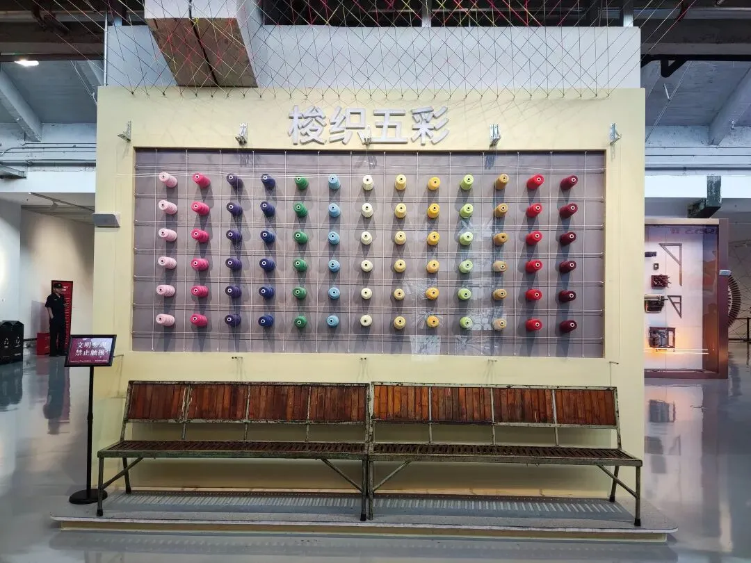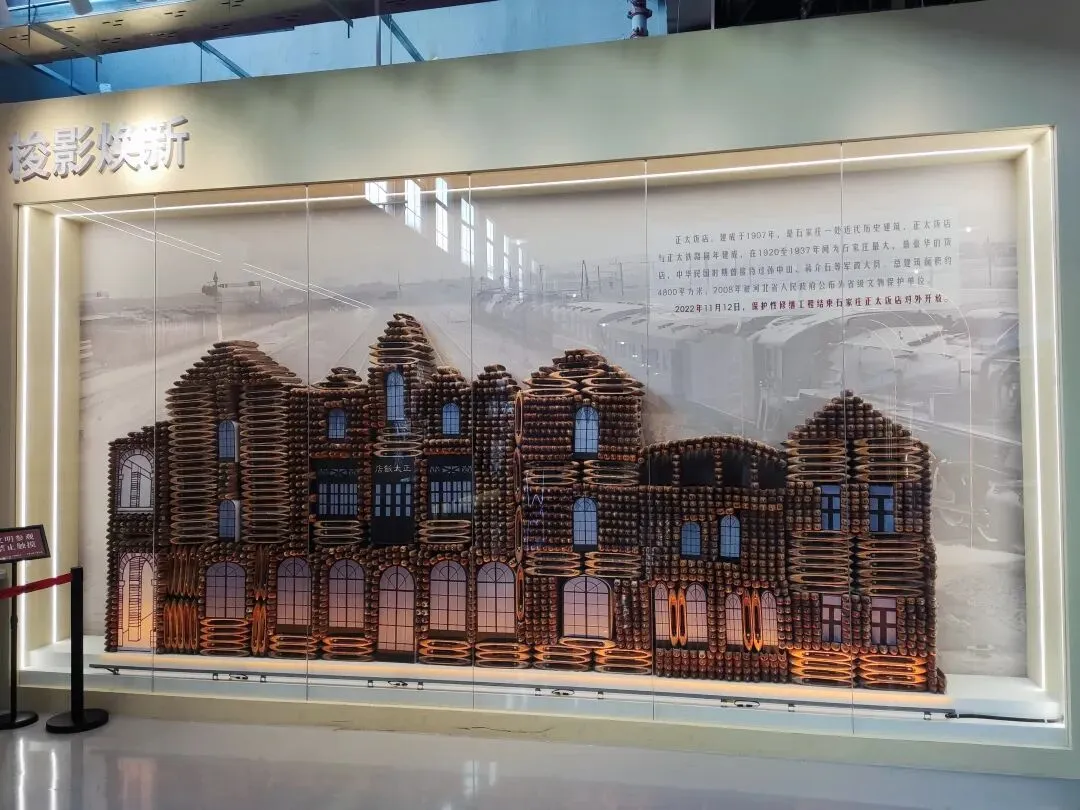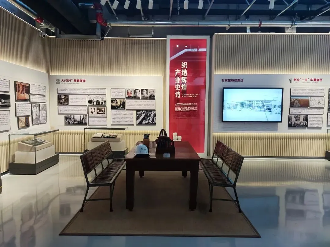 入口采用中式仿古建筑风格,红瓦飞檐搭配灰砖主体,既保留了老厂区的历史风貌,又通过现代修缮工艺焕新,是园区的标志性入口。 主体采用中式仿古建筑设计,灰砖墙体搭配标志性的朱红飞檐与回廊,既保留了上世纪50年代“一五”计划时期的工业建筑底蕴,又通过修缮呈现出庄重精致的视觉效果。作为纺织展览馆,这里集中展示石家庄纺织工业从1907年萌芽、1953年建厂到新时代转型的全历史脉络,是了解石家庄“纺织城”记忆的关键空间。 正中央是一座伟人铜像,身姿挺拔,挥手致意,铜像后方衬有大型铜质浮雕,生动刻画了纺织车间内工人操作纺纱机的繁忙场景,精准还原了老棉一厂的生产风貌。这组雕塑是展览馆的灵魂,象征着党和国家对石家庄纺织工业(作为新中国“一五”重点项目)的高度重视,也是几代纺织工人奋斗精神的具象化表达。 画面印制的是黑白版画风格的纺织女工操作纺纱机的场景,精准还原了上世纪50年代棉纺厂的生产风貌,是石家庄“纺织城”记忆的视觉符号。装置主体由上百个木质纺织梭子呈放射状、同心圆排列,形成饱满的太阳花/轮盘造型,视觉冲击力极强。 梭子是传统织布机的核心工具,用来牵引纬线、穿梭于经线之间,是纺织工业最具代表性的符号,精准呼应了石家庄“纺织城”的城市记忆。梭子间用红色丝线串联,既还原了纺织工艺的本质,也让静态装置产生了“经纬交织”的动态感,象征着纺织工业的脉络与传承。 大兴纱厂始建于1921年,1922年正式投产,是石家庄第一家大型民族纺织企业,也是河北省近代纺织工业的标杆,标志着石家庄从乡村向工业城市的转型。由裕大华资本集团创办,是当时华北地区规模最大、设备最先进的纱厂之一,见证了中国民族工业在战乱中艰难崛起的历程,后发展为石家庄棉七纺织厂。 《红旗歌》是中国话剧史上第一部正面描写工人阶级的大型话剧,1948年在石家庄首演,由华北大学文艺学院集体创作、鲁煤执笔,以石家庄大兴纱厂(今棉七)女工阎金芬为原型创作,真实展现了工人从受压迫到当家作主、参与劳动竞赛的历程,是新中国工人文艺的开山之作。 1949年进京演出后轰动全国,被拍成电影,同名主题曲传唱大江南北,奠定了石家庄“新中国工人文艺摇篮”的地位。 聚焦新中国“一五”计划时期,石家庄棉纺工业的崛起历程,展示了棉一、棉二等国营纺织厂的建设史料、老厂区影像,是石家庄成为“纺织城”的起点见证。展区中央复原了老厂会议室场景,摆放了当年的办公桌、安全帽、工具等实物,让参观者沉浸式感受纺织工业的历史氛围。粗纱机是棉纺生产的核心工序设备,作用是将前道工序的熟条进一步牵伸、加捻,制成粗纱,为后续细纱工序提供半成品,是棉纺流程中承上启下的关键设备。A454型属于第二代托锭粗纱机,是上世纪70-90年代国内棉纺厂的主流机型,由天津纺织机械厂等单位研制,广泛应用于石家庄棉一、棉二等国营纺织厂。 梳棉机是纺纱工序的“心脏”,主要作用是对开棉机制成的棉卷(或废棉)进行细致梳理、除杂与混合,清除其中的杂质(如叶屑、籽壳)与短绒,将松散的棉纤维整理成连续、平顺的棉条(粗纱前身)。机器主体保留了上世纪50-80年代国产棉纺设备的经典绿色涂装,结构庞大且精密,可见大型锡林(滚筒)、盖板、道夫等核心传动部件,机械质感厚重。 顶部“梭织五彩”点明核心,既呼应了纺织工具“梭子”,也寓意纺织工艺为生活编织出多彩可能。墙面以矩阵形式陈列了8种颜色的棉线轴(粉、紫、蓝、绿、白、黄、浅绿、红),直观展示了纺织原料的色彩多样性。 陈列了不同规格的棉纤维样本、纱线样品、坯布/成品布样,直观展示了从棉花到布匹的纺织全流程,让观众理解纺织的核心工艺逻辑。 “梭机忆影”以纺织核心工具“梭子”与“织机”为核心,寓意用老物件唤醒石家庄纺织工业的集体记忆。 展柜中央的红色标语“高高兴兴上班来,平平安安回家去”,是上世纪国营工厂最具代表性的安全文化标语,完美复刻了老棉纺厂的车间氛围,是几代纺织工人的共同记忆。展品串联起纺织工人从生产、劳动竞赛到日常工作的完整场景,是石家庄工业遗产活化的核心载体,让参观者沉浸式感受纺织工人的奋斗岁月。墙面绿底金字的“职工之家”牌匾,点明了空间属性,这是国营棉纺厂为工人设立的福利、文化、医疗综合服务场所,是新中国工厂“职工福利体系”的典型代表。下方悬挂的“模范职工小家”锦旗,是上世纪国营企业工会的最高荣誉之一,见证了棉纺厂班组建设与工人的集体荣誉感。 以正太饭店为核心创作原型,用纺织工业的核心符号“梭子”重构城市建筑景观,是工业遗产艺术化活化的经典代表。 石家庄工业遗产活化改造项目