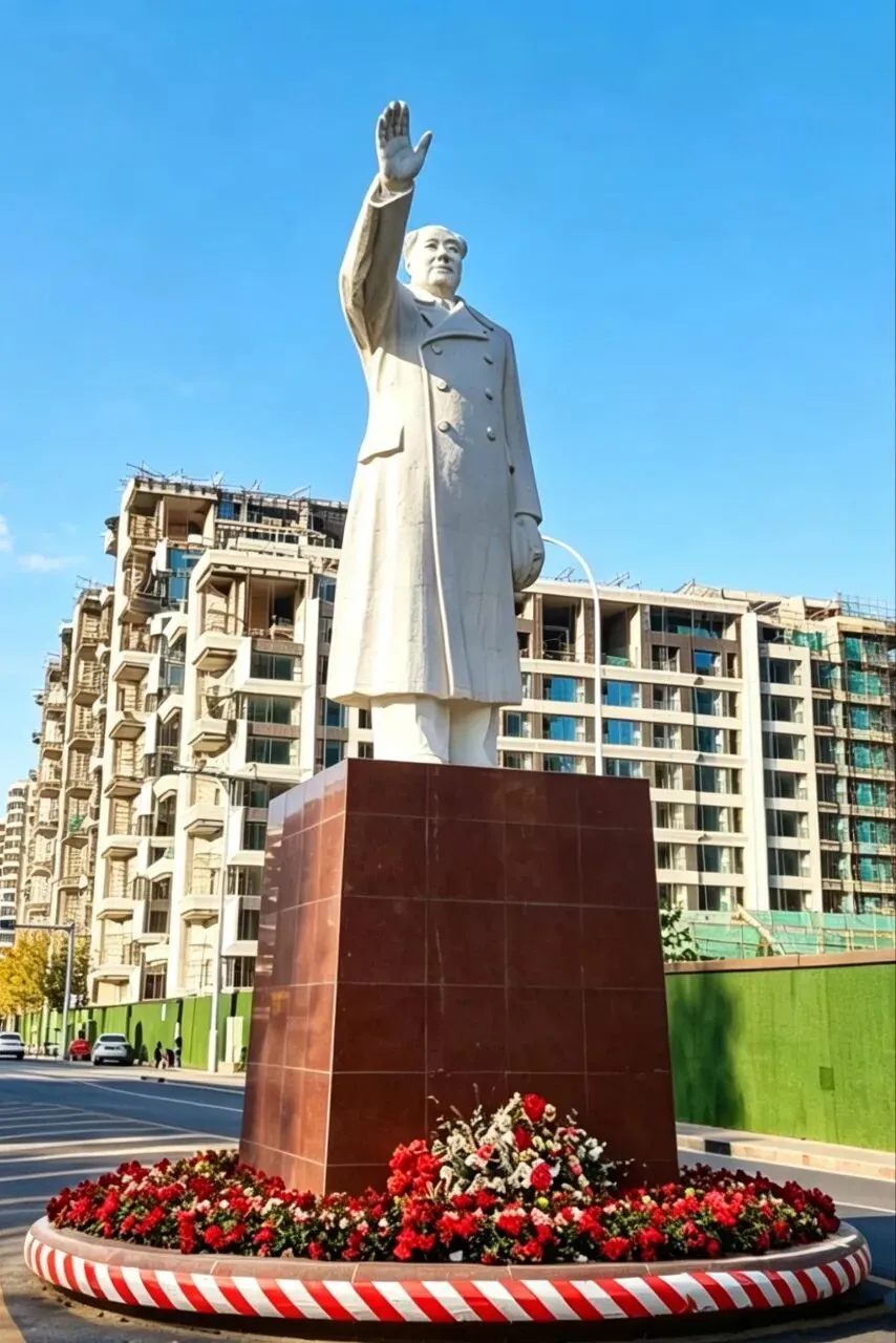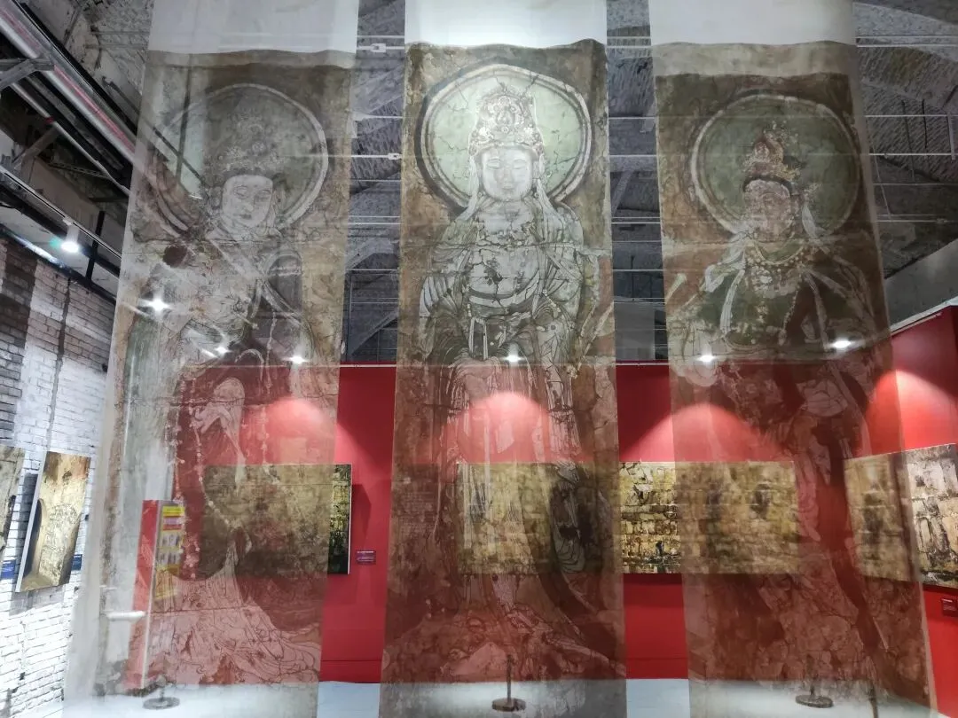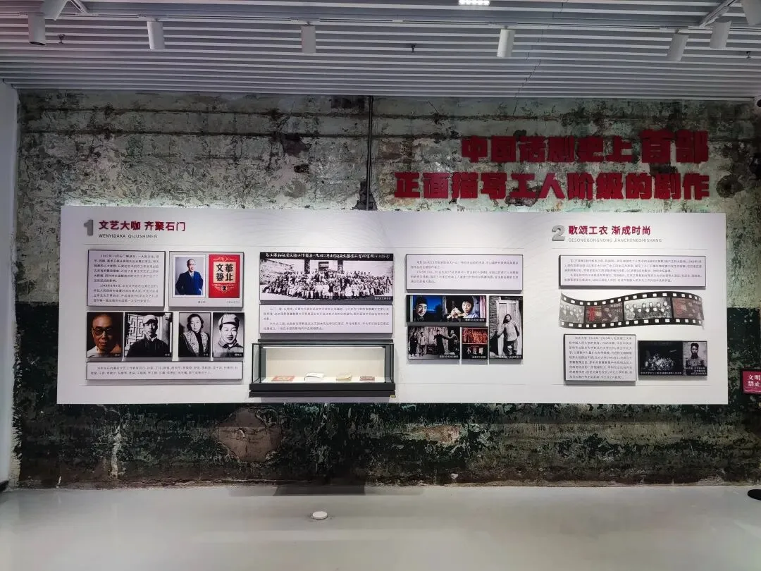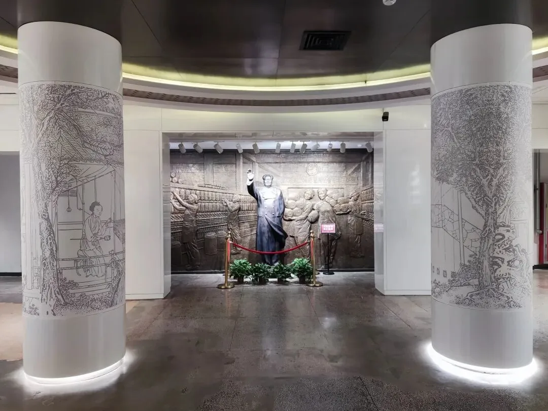 采用半透明纱幕+沉浸式光影的现代展陈方式,最大程度还原了壁画在原寺大殿中的视觉效果,同时通过数字技术修复了壁画的残损痕迹,让观众直观感受明代壁画的艺术魅力。 织音1953 常设临展厅 这是园区“工业遗产+文化艺术”定位的核心载体,也是石家庄城市文化展示的重要公共文化空间。 该展厅的展览规划围绕“河北本土文化+工业遗产活化+城市公共文化”三大核心,重点展览包括河北本土国宝级文物/非遗的“数字回家”特展、工业遗产与城市历史主题展、当代艺术、潮流文化与青年创意展等。石家庄石煤机老厂区(原石家庄煤矿机械有限责任公司),是石家庄工业历史的重要遗存。作为石家庄城市更新首开样板工程,2023年10月1日正式开街,以“时空斗转,城中桃源”为理念,打造工业风沉浸式城市美学生活空间。 石美集保留了老厂房的红砖墙、钢结构等工业元素,同时融入现代商业、休闲、文化功能,实现“工业绣带”到“生活绣带”的转型。采用经典的“挥手”姿态,身着中山装式大衣,右手高举挥手,左手自然下垂,整体庄严肃穆,是国内毛主席塑像的经典形制之一。在工业遗址园区内保留毛主席塑像,既承载了老厂区职工的历史记忆,也延续了石家庄的红色文化脉络,是工业遗产活化与红色文化传承的结合。