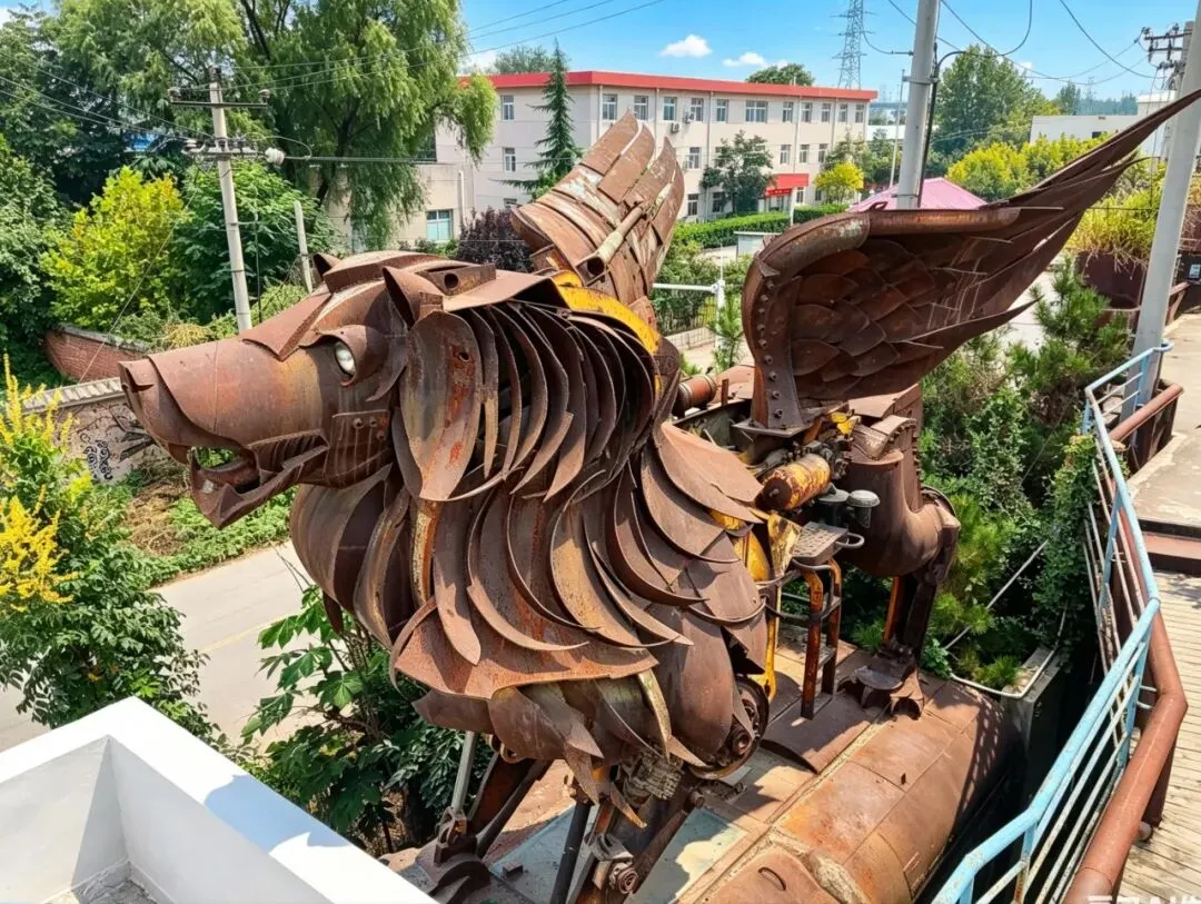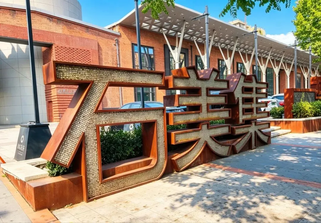 它是原石家庄钢铁厂(石钢)的核心生产设施,始建于上世纪50年代,是石家庄钢铁工业发展的“活化石”,见证了石家庄从“轻工业城市”到“华北重工业重镇”的转型历程。作为石钢的主力高炉,它曾承担着钢铁冶炼的核心任务,是石家庄工业辉煌时代的直接载体,承载了几代石家庄产业工人的集体记忆。由老厂房改造的工业风观景连廊,保留了原厂房的钢桁架屋顶与混凝土墙体,增设了现代钢结构楼梯与护栏,既作为园区的通行动线,也打造了沉浸式工业风观景平台。 “Rock Home Town”锈色艺术墙