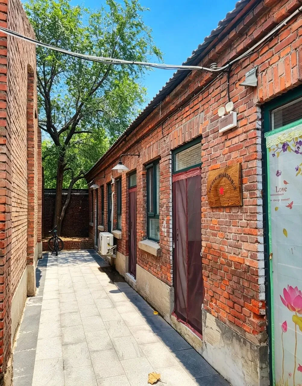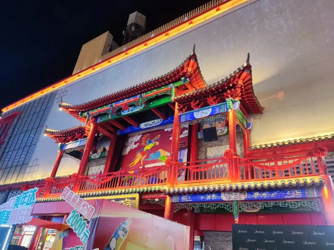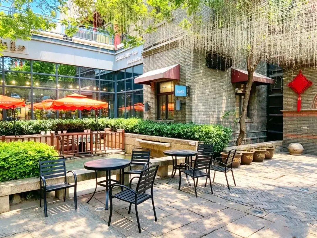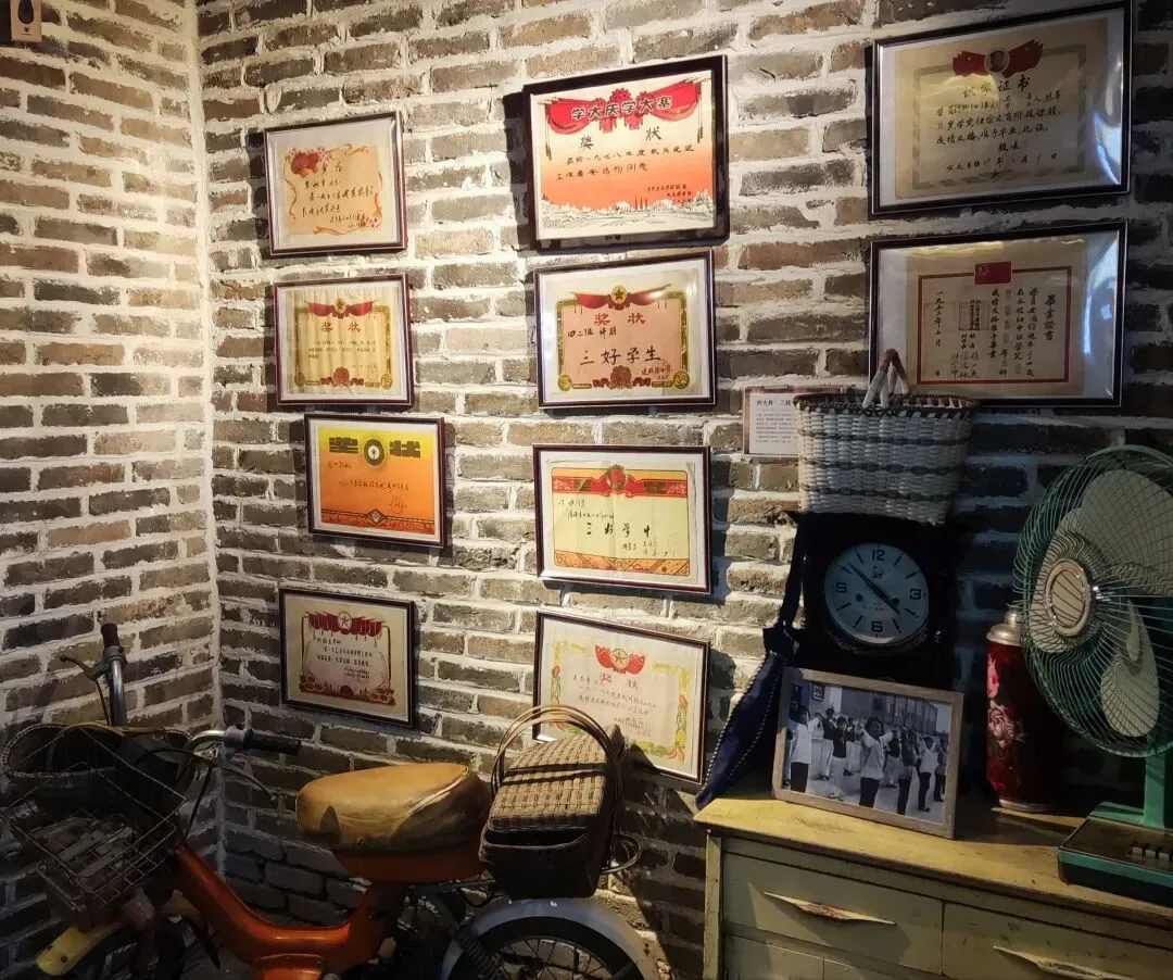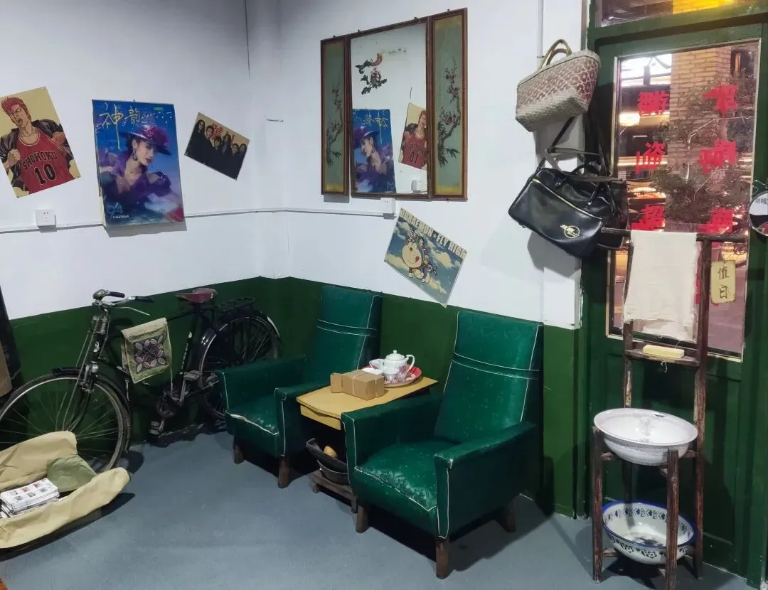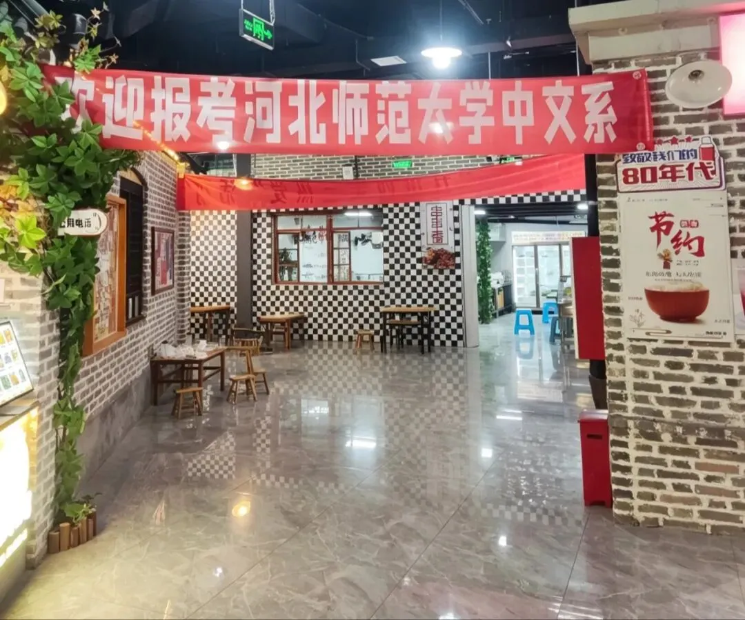 园区原址为石家庄棉纺厂老仓库,是石家庄纺织工业辉煌历史的实物载体。这片老仓库曾服务于石家庄棉纺产业,见证了城市“纺织名城”的黄金时代,建筑保留了典型的工业风红砖肌理。 外贸街6号以“80年代复古市井”为核心主题,该建筑区域是主题还原的关键载体。它通过保留老厂房建筑本体,结合时代感的装饰细节,完整复刻了老石家庄的市井氛围与时代记忆,是园区“工业遗产活化”与“怀旧场景打造”的重要实践样本。经典的深绿色铁皮顶搭配米白色窗框,还原了国营报刊亭的复古造型,是80-90年代城市街头的标志性设施。橱窗内贴满报纸、杂志,完整复刻了当年报刊亭的经营场景,唤醒一代人的童年记忆。 以改造后的老棉纺仓库红砖建筑为载体,通过大型复古宣传画,完整还原了上世纪中后期的时代风貌,是园区“80年代市井怀旧”主题的标志性打卡点。 红砖胡同复原
