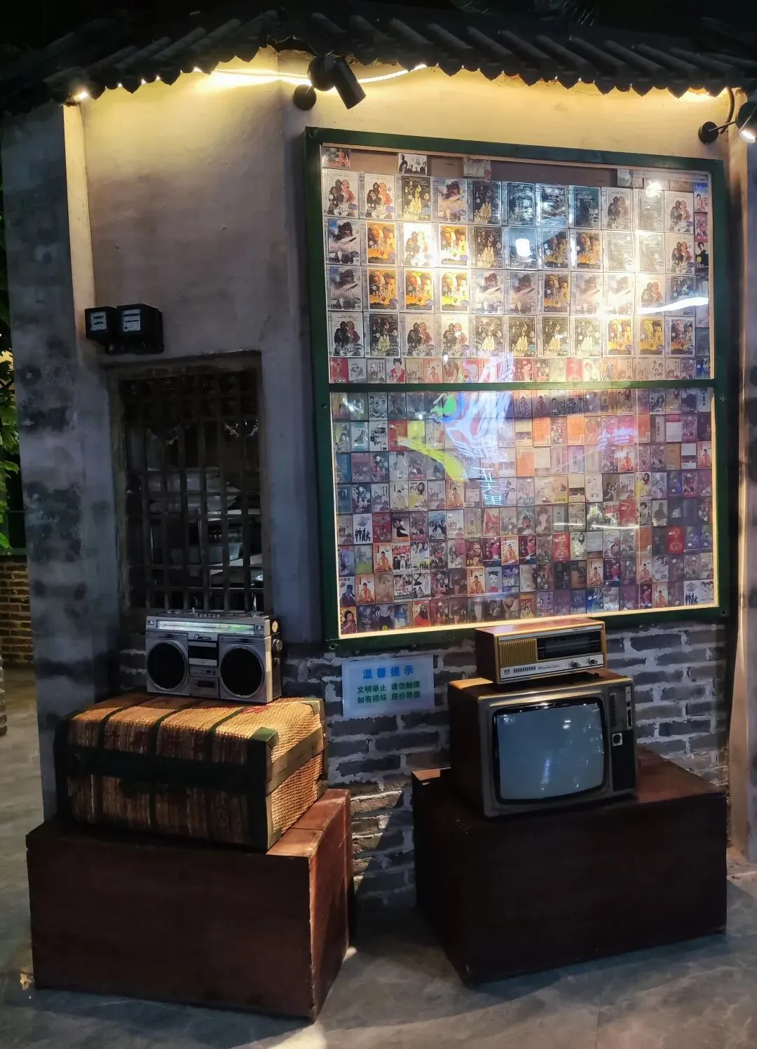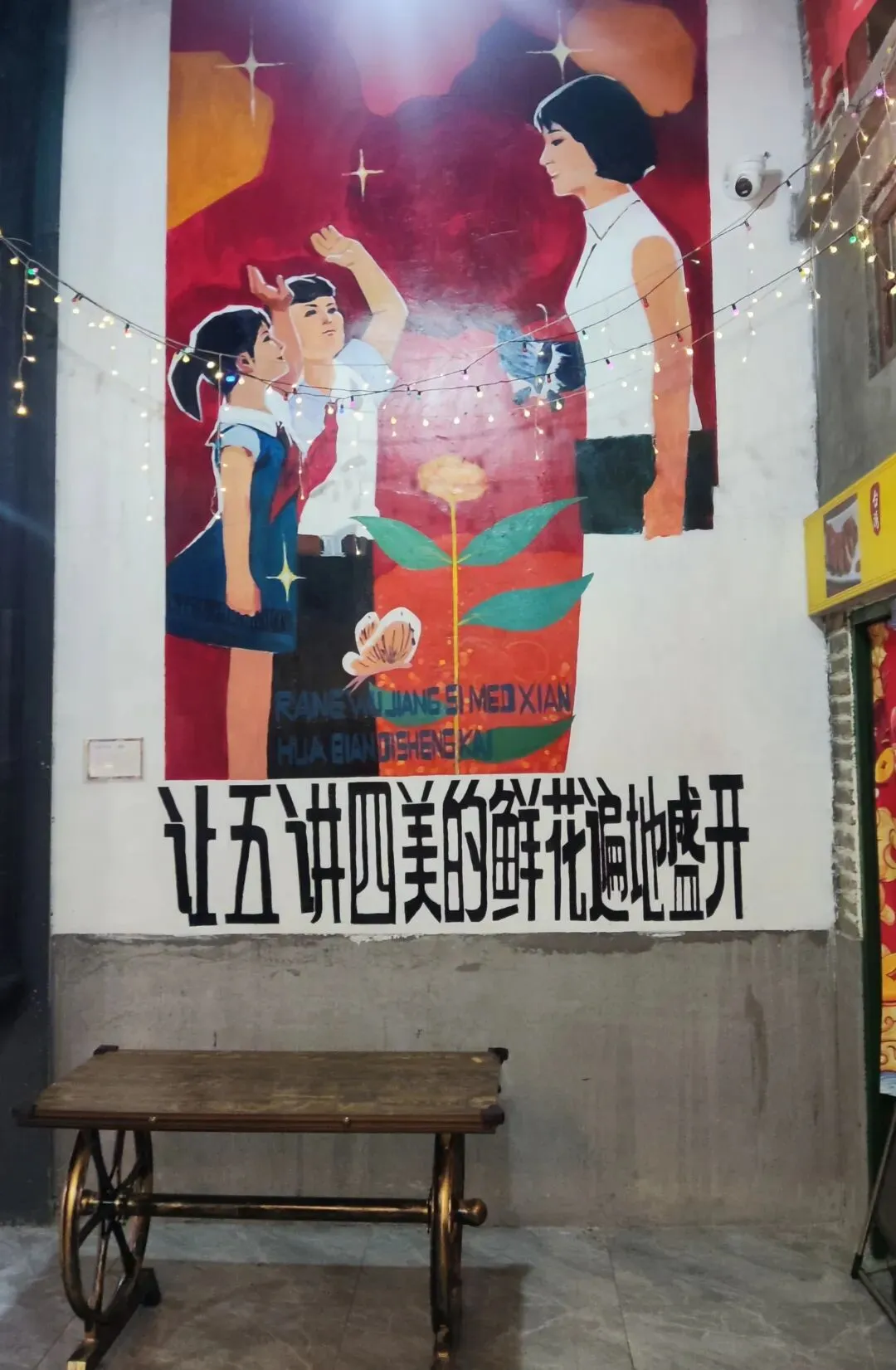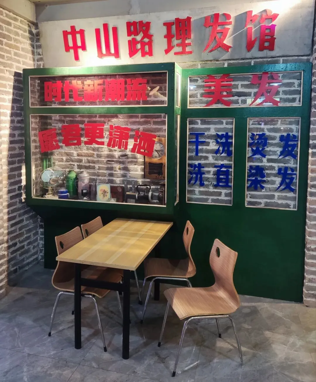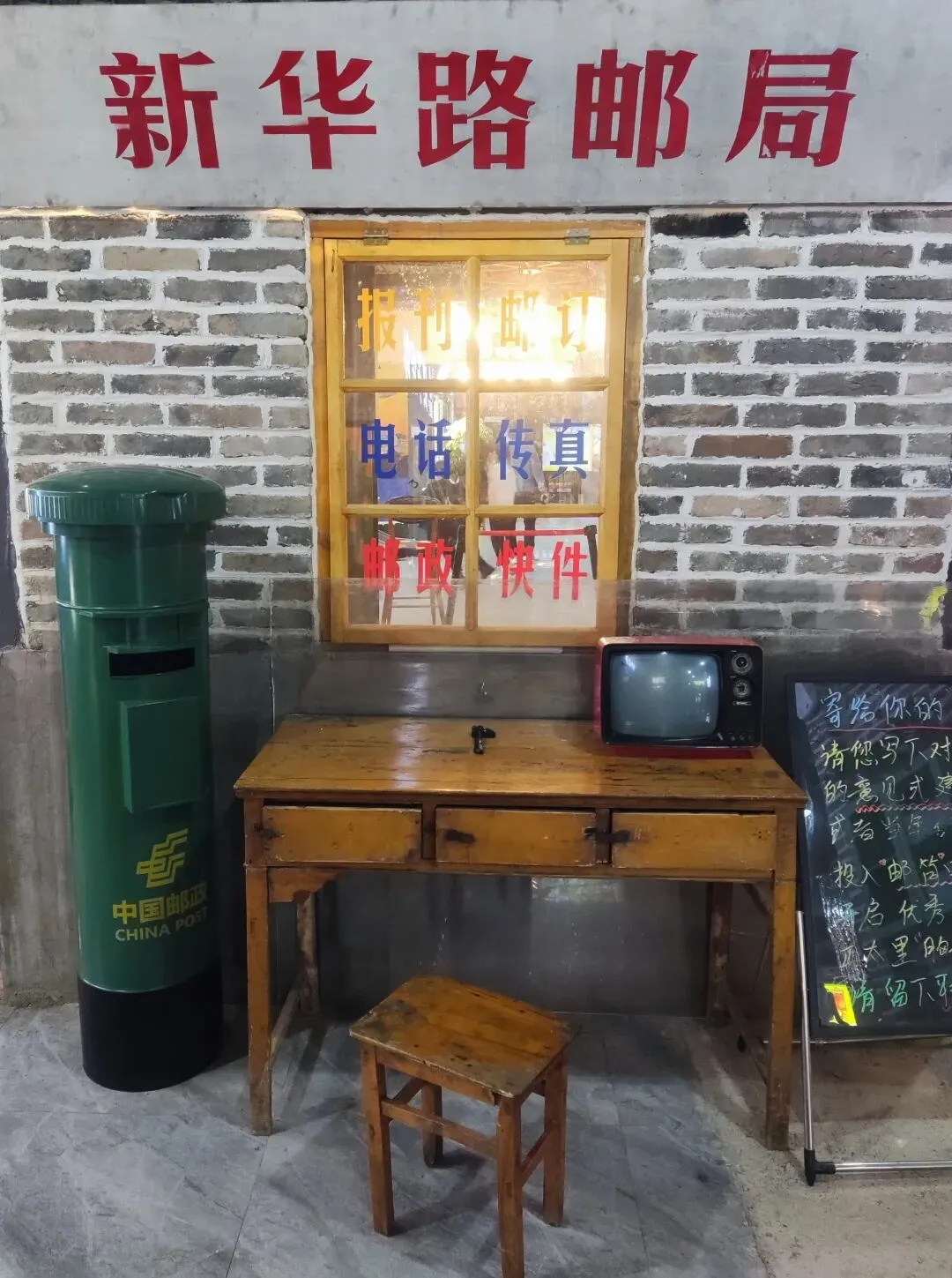 园区原址为石家庄棉纺厂老仓库,是石家庄纺织工业辉煌历史的实物载体。这片老仓库曾服务于石家庄棉纺产业,见证了城市“纺织名城”的黄金时代,建筑保留了典型的工业风红砖肌理。 外贸街6号以“80年代复古市井”为核心主题,该建筑区域是主题还原的关键载体。它通过保留老厂房建筑本体,结合时代感的装饰细节,完整复刻了老石家庄的市井氛围与时代记忆,是园区“工业遗产活化”与“怀旧场景打造”的重要实践样本。经典的深绿色铁皮顶搭配米白色窗框,还原了国营报刊亭的复古造型,是80-90年代城市街头的标志性设施。橱窗内贴满报纸、杂志,完整复刻了当年报刊亭的经营场景,唤醒一代人的童年记忆。 以改造后的老棉纺仓库红砖建筑为载体,通过大型复古宣传画,完整还原了上世纪中后期的时代风貌,是园区“80年代市井怀旧”主题的标志性打卡点。 红砖胡同复原