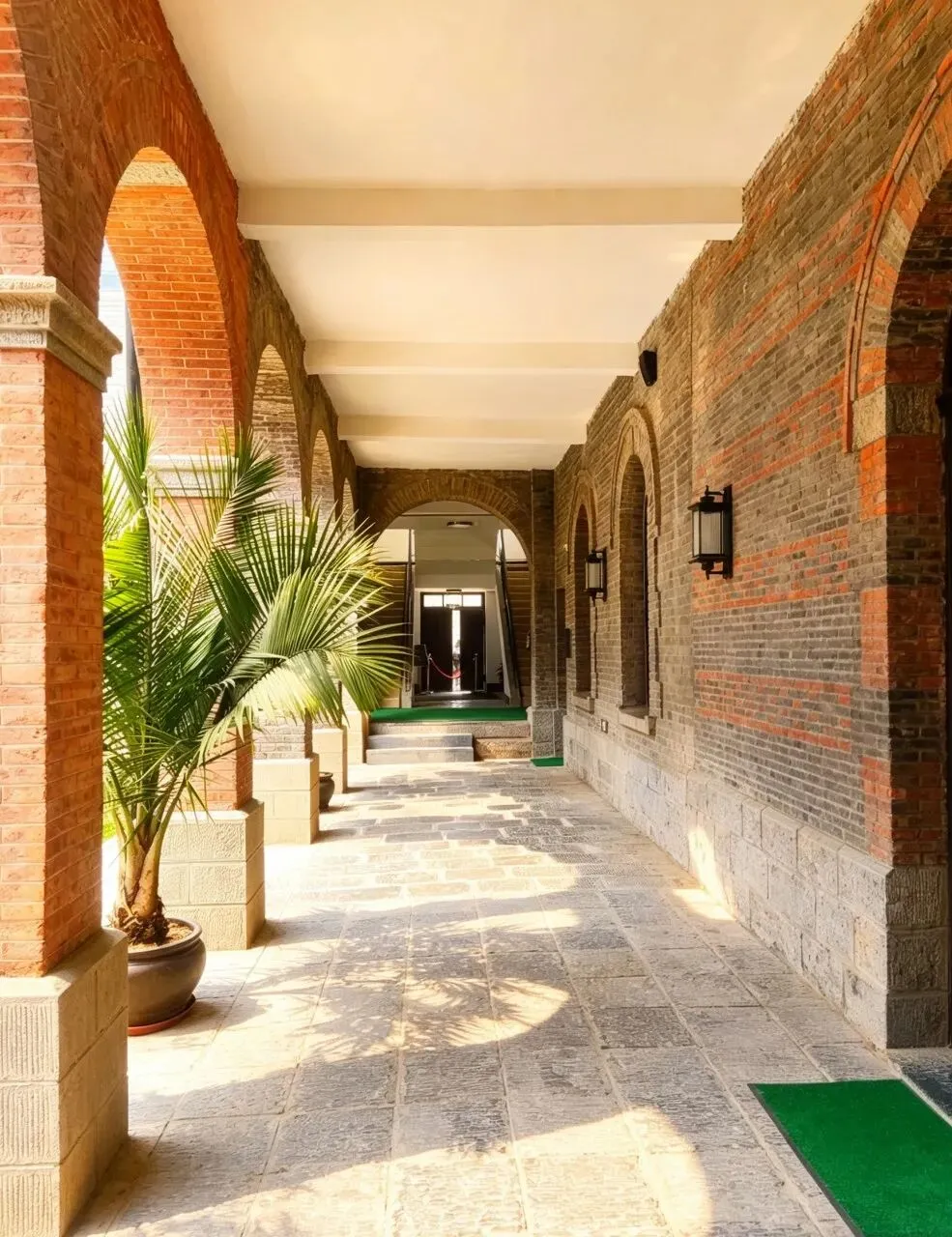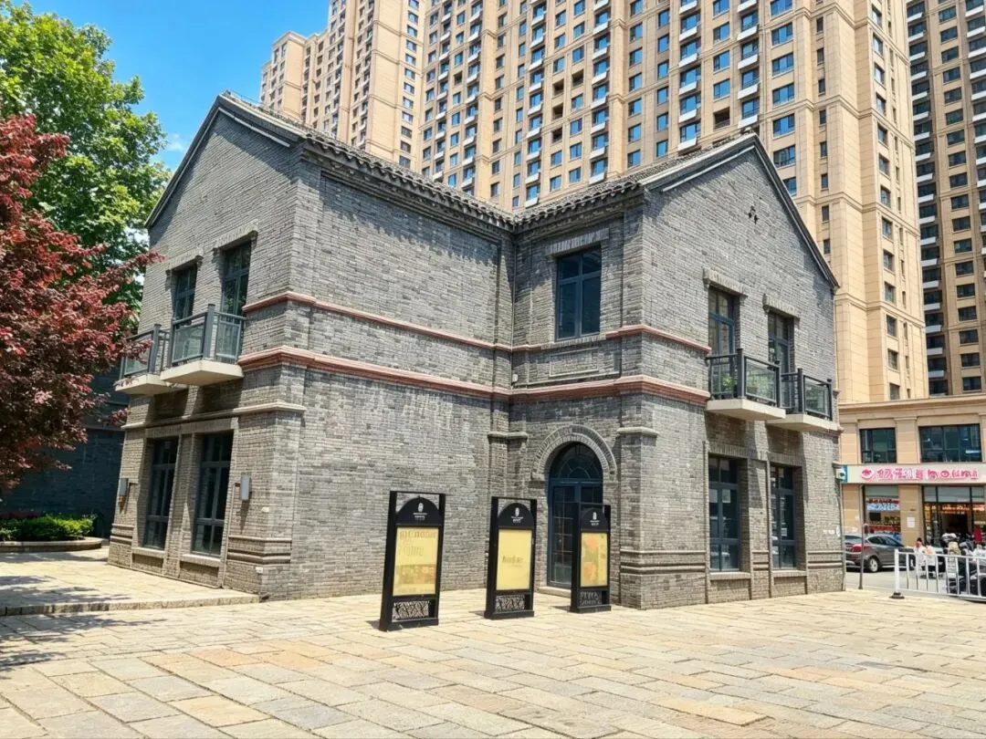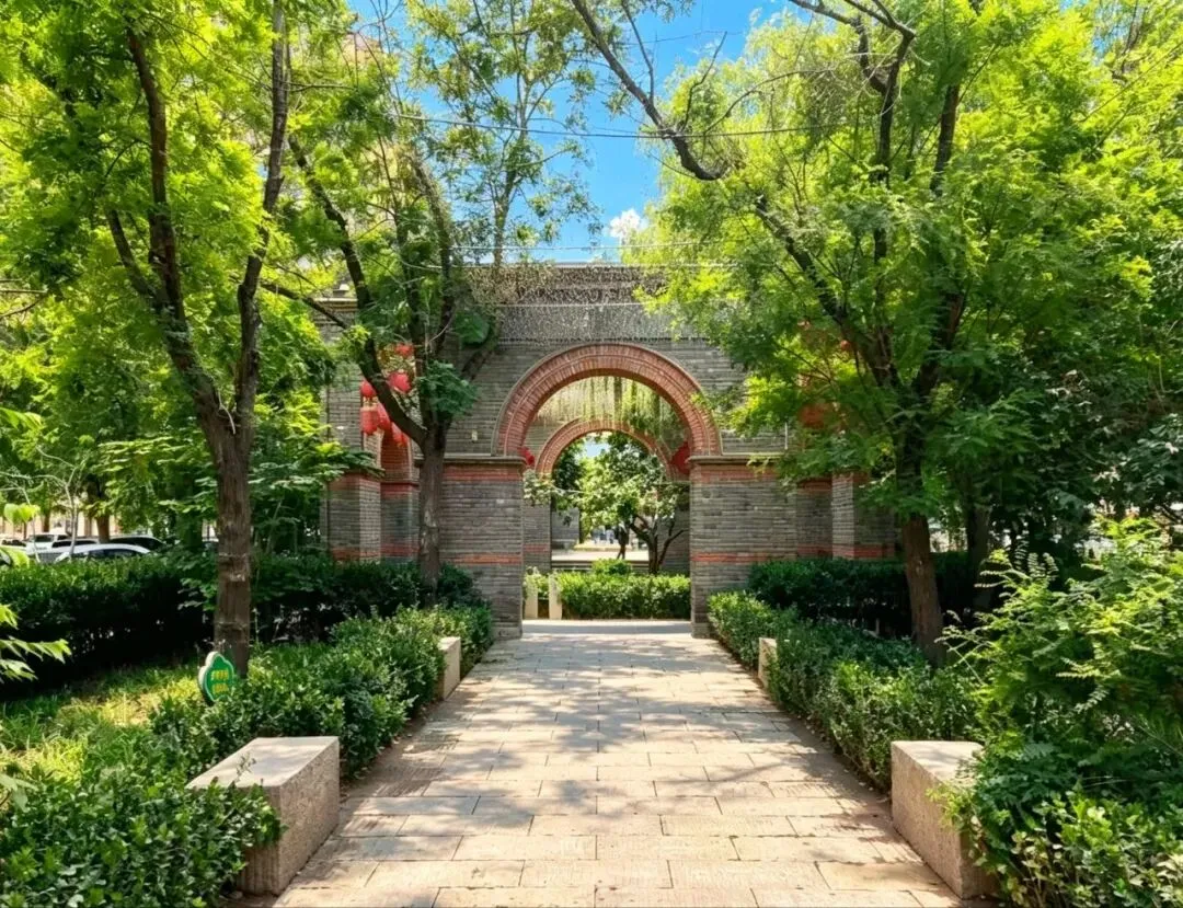 街区原址为石家庄民生路,是石家庄最早的百年老街之一,见证了石家庄从铁路小站到现代都市的发展历程,被视为石家庄现代城市的起源地。由绿地集团按“修旧如旧”原则改造,保留了90余万块老青砖与原建筑砖雕,高度还原了民国时期老石门民生路商业带的繁华风貌。 采用连续拱券门设计,以青砖为主体、红砖勾勒拱边,是典型的民国时期中西合璧建筑风格,还原了老石门的建筑美学。长廊串联起街区内的历史建筑与景观,形成沉浸式民国街巷体验,是石家庄民国风写真、旅拍的热门取景地。 以青灰砖为主体砌筑,红砖做腰线、拱券装饰,是典型的民国时期中西合璧石库门风格,还原了老石门(石家庄旧称)的近代建筑风貌。采用坡屋顶、拱形门窗、铁艺阳台等元素,既保留了中式传统民居的结构,又融入了西方近代建筑的装饰手法,是石家庄近代城市发展的建筑缩影。该建筑始建于1939年,是侵华日军占领石家庄期间设立的宪兵司令部所在地,是日本侵华战争在石家庄留下的重要实物见证,承载着石家庄的近代屈辱历史。 正太饭店