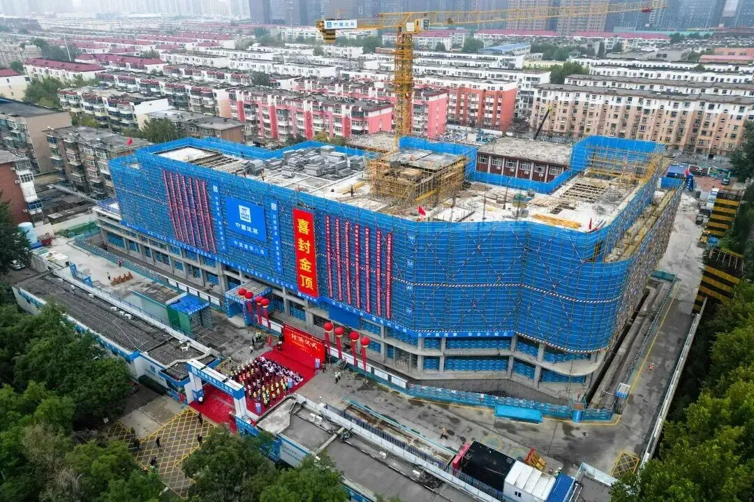 石家庄市第二十七中学槐中路校区整体改造项目,建筑面积2.85万平方米,由一栋6F/-2F教学综合楼及配套设施和原有5F学生宿舍楼装修改造组成。25年9月底,顺利完成主体结构封顶,项目正式转入二次结构、装饰装修施工新阶段。