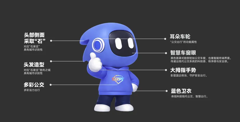 🚌面部:他们的面部设计灵感来源于公交车的车窗,更象征着公交系统所代表的科技感、智能感与秩序感。