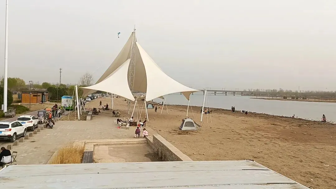 岸边空地平整开阔,可搭帐篷、天幕,放风筝、拍河景大片超合适;