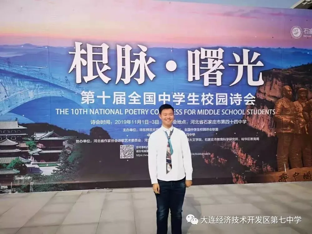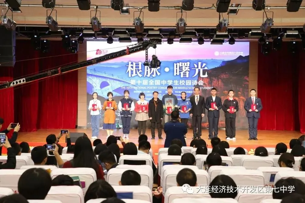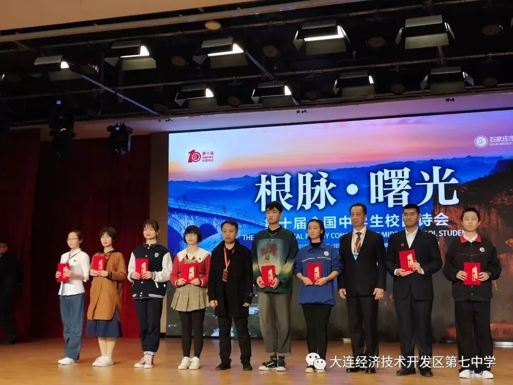 自今年10月收到诗会邀请函以来,学校高度重视。由杨颖主任和语文组于启泓老师、田雪梅老师牵头,在全校范围内对师生进行了原创诗歌创作征集活动,层层筛选,最终选出了1首教师作品向诗会组委会推荐。确定参会朗诵篇目后,学校安排专人担任参会诗歌朗诵指导教师,还专门为此制作了精美的配乐视频和展演道具,在学校、班主任老师和家长们的共同努力支持下,我校师生团队来到燕赵之地,共赴一场诗与远方的盛会。11月2日上午,在诗会第二篇章“青春激韵”中,六位同学朗诵了原创诗歌《青春之歌》,台风稳健大气,情感细腻自然,很好地传达了诗情意蕴,充分展示了我校师生的人文气质和卓越的文脉雅韵,受到与会师生的好评,并获得“最佳展演奖”。