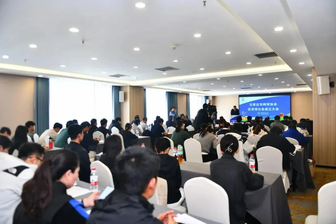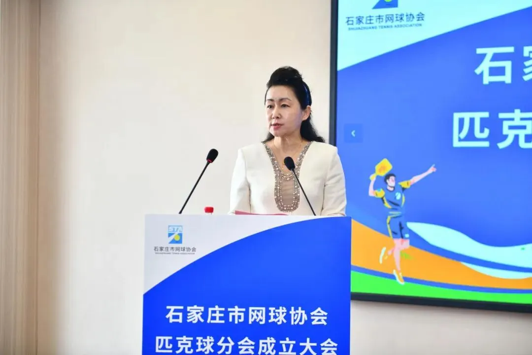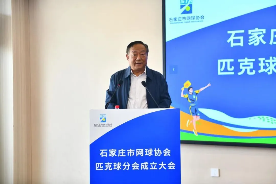 各位领导在致辞中对石家庄市网球协会匹克球分会的成立表示祝贺,并强调匹克球作为新兴体育项目,对丰富群众健身方式、促进全民健康具有重要意义。