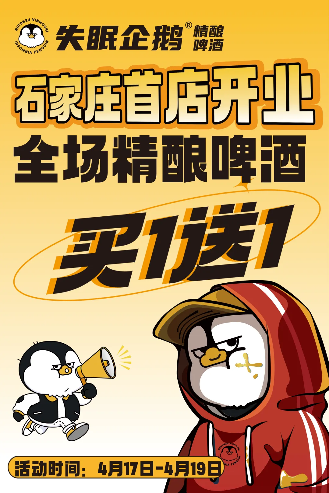 全场精酿啤酒买一送一!