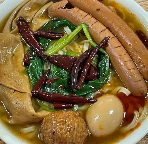 吃法秘诀:一定要加鸡蛋、豆皮,再舀一勺头锅辣椒,这才是老石家庄人的标配。