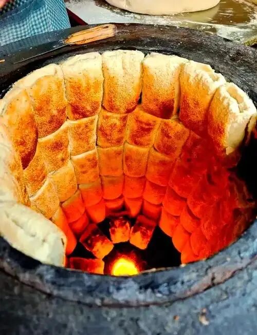 用炭火缸炉烤制,刚出炉的烧饼焦黄酥脆,层层分明,咬一口"咔嚓"作响。越嚼越香,配一碗羊汤,绝了。