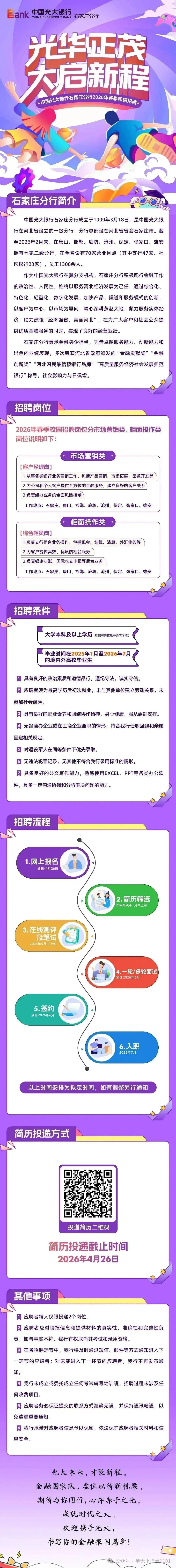 【石家庄招聘】石家庄有岗!中国光大银行石家庄分行2026春季招聘